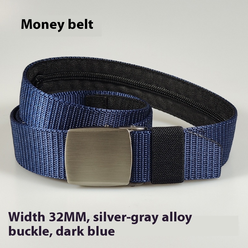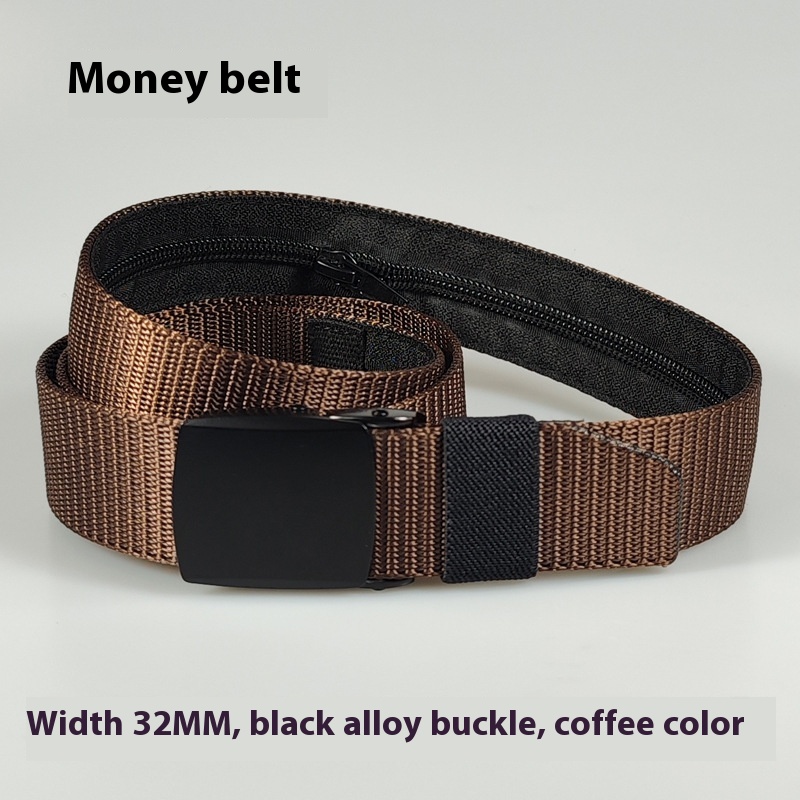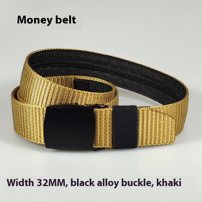 32MM Black Alloy Buckle Nylon Belt Women's Outdoor Security Multifunctional Anti-theft -