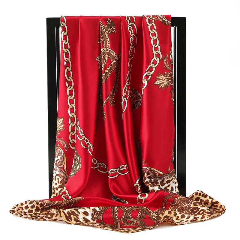 90 * 90Cm Square Scarf Leopard Chain Silk Scarf Simulation Silk Scarf