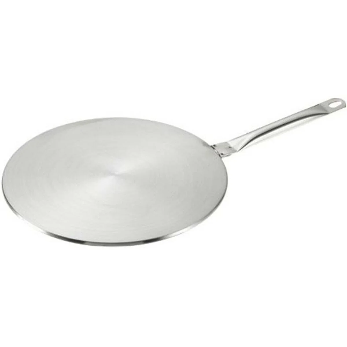 El adaptador de inducción Ibili modelo 703724 es un accesorio diseñado para convertir utensilios que no son compatibles en placas de cocción por inducción, permitiendo aprovechar la eficiencia energética y la rapidez de este tipo de cocinas. Fabricado en acero inoxidable, este adaptador garantiza una alta durabilidad, resistencia a la corrosión y una fácil limpieza, manteniendo un estándar de higiene óptimo. Su diámetro de 24 centímetros es adecuado para una amplia variedad de recipientes, ofreciendo una amplia superficie de contacto que asegura una distribución uniforme del calor y una cocción constante sin puntos calientes. Este modelo es compatible tanto con cocinas de inducción como con superficies de vitrocerámica, aumentando su versatilidad en cualquier cocina moderna. Gracias a su construcción en acero inoxidable y su diseño plano, permite una excelente transmisión térmica y una respuesta rápida a los cambios de temperatura, optimizando el rendimiento energético. Este adaptador es una herramienta práctica para quienes desean utilizar sus ollas tradicionales o de materiales no ferromagnéticos en placas de inducción sin necesidad de reemplazarlas. La calidad y funcionalidad del adaptador Ibili 703724 lo posicionan como una solución eficaz y confiable para ampliar las posibilidades de cocinado en hogares con cocción por inducción o vitrocerámica.