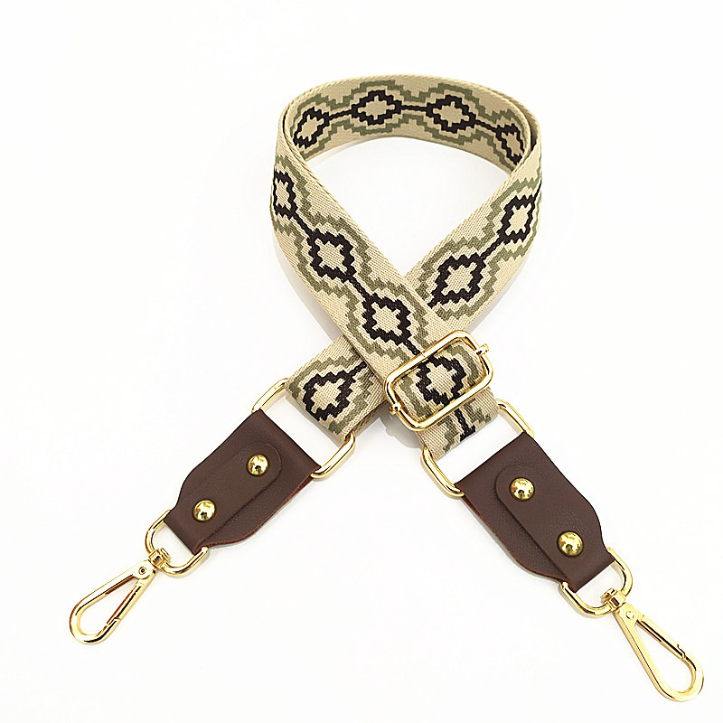 Adjustable Jacquard Webbing With Leather Width Accessories Shoulder Messenger Female Bag Strap -