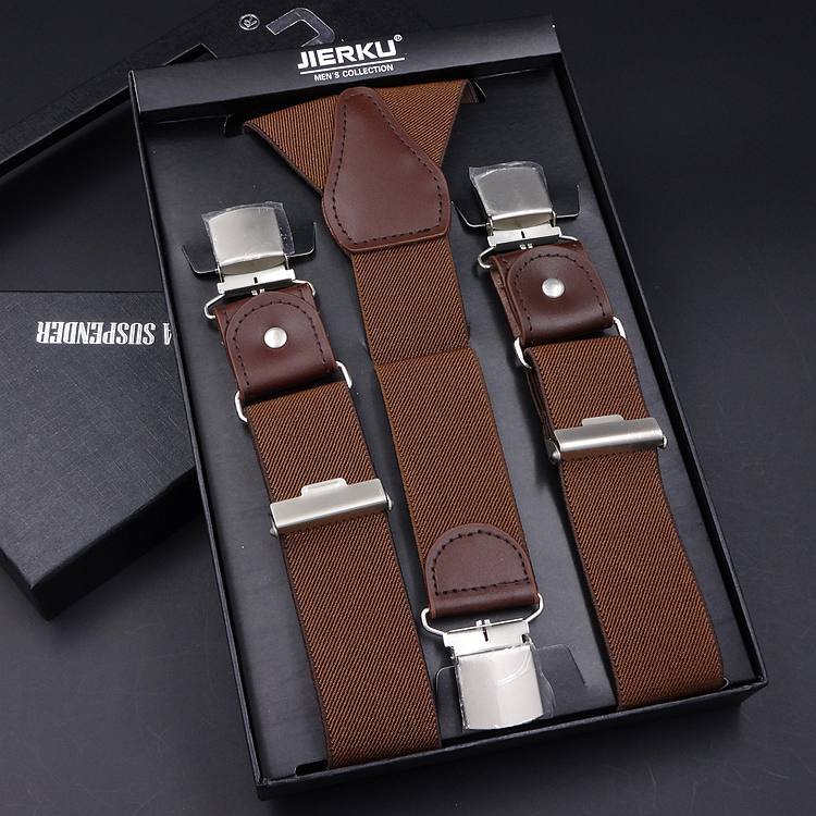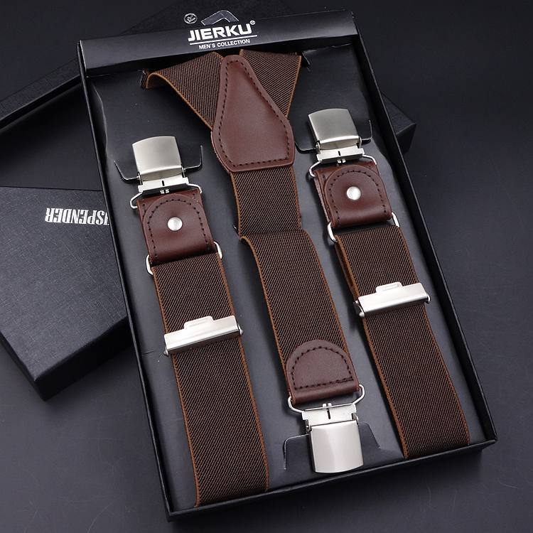 Adult Business Leather Three-fold Men's Y-shaped Jacquard Suspender Strap