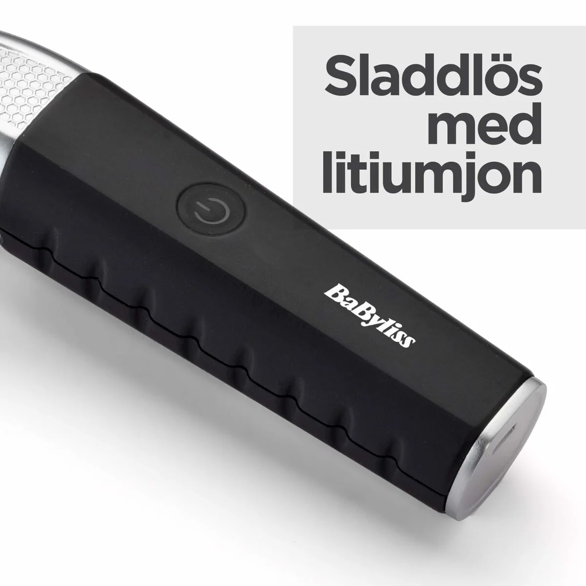 BaByliss Bartschneider Lithium Power T812E. Color del producto: Negro, Plata, Longitud mínima del cabello: 0,5 mm, Longitud máxima del cabello: 1 cm. Fuente de energía: Batería, Tiempo de funcionamiento: 80 min