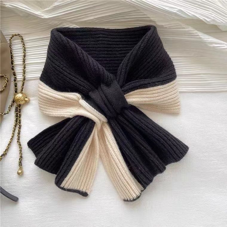 Autumn And Winter Cross Knitted Colorblock All-matching Warm Scarf