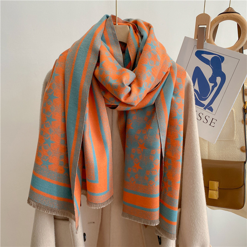 Autumn And Winter Five-pointed Star Warm Scarf Female Long Thickened Artificial Cashmere Scarf -