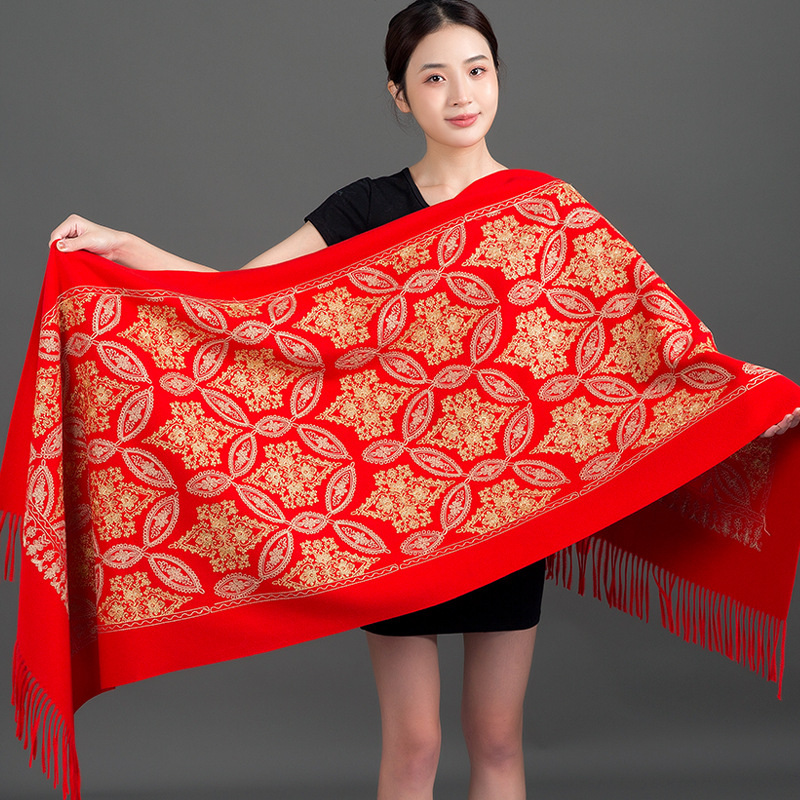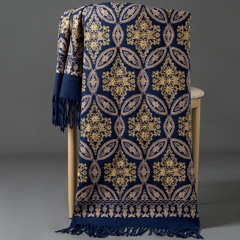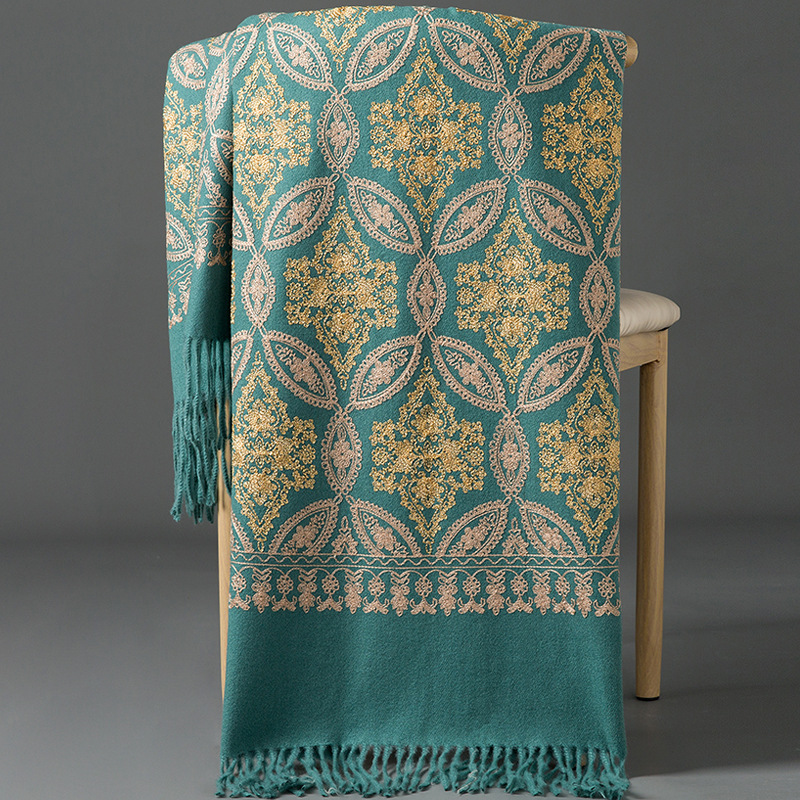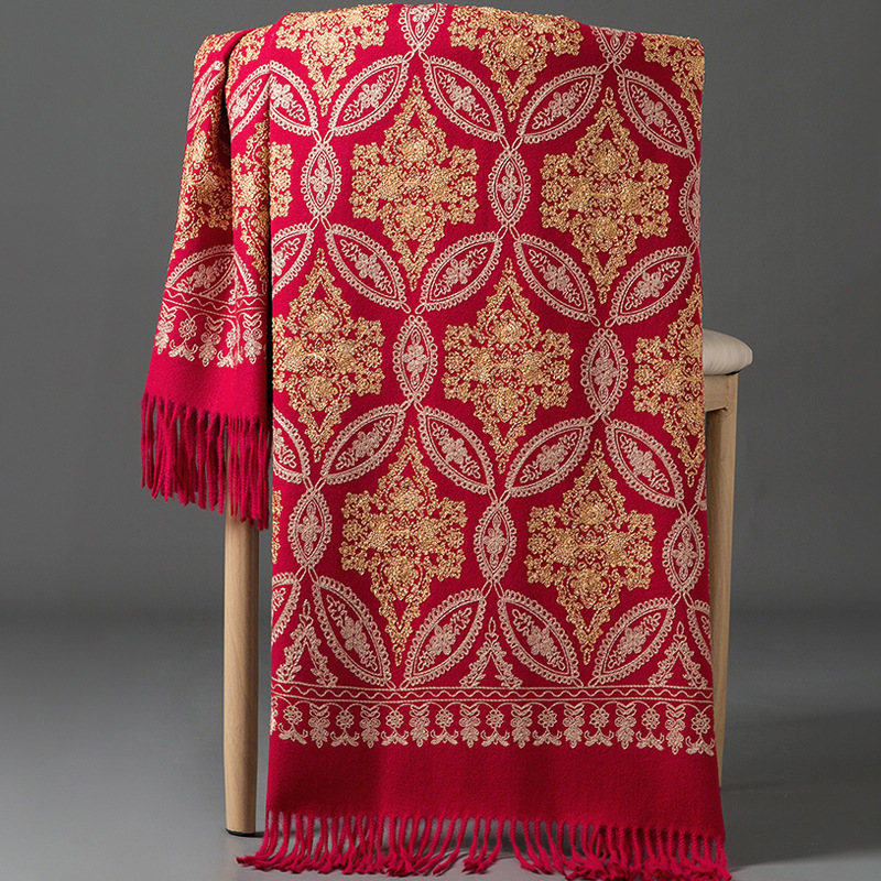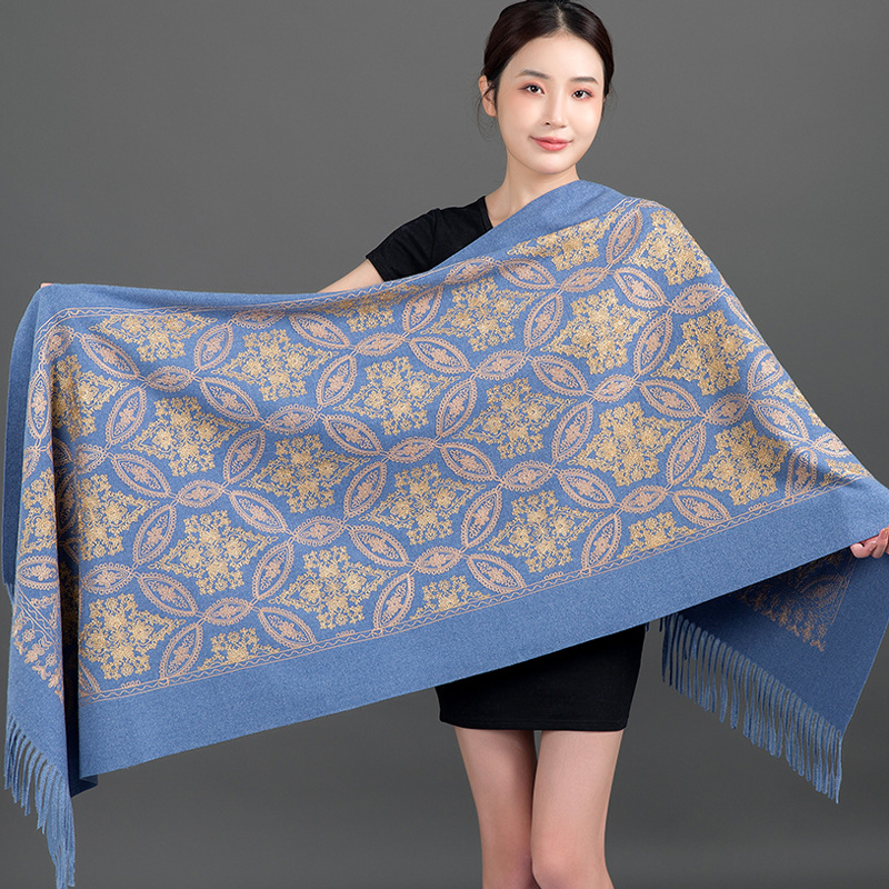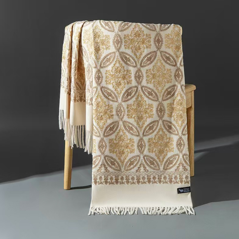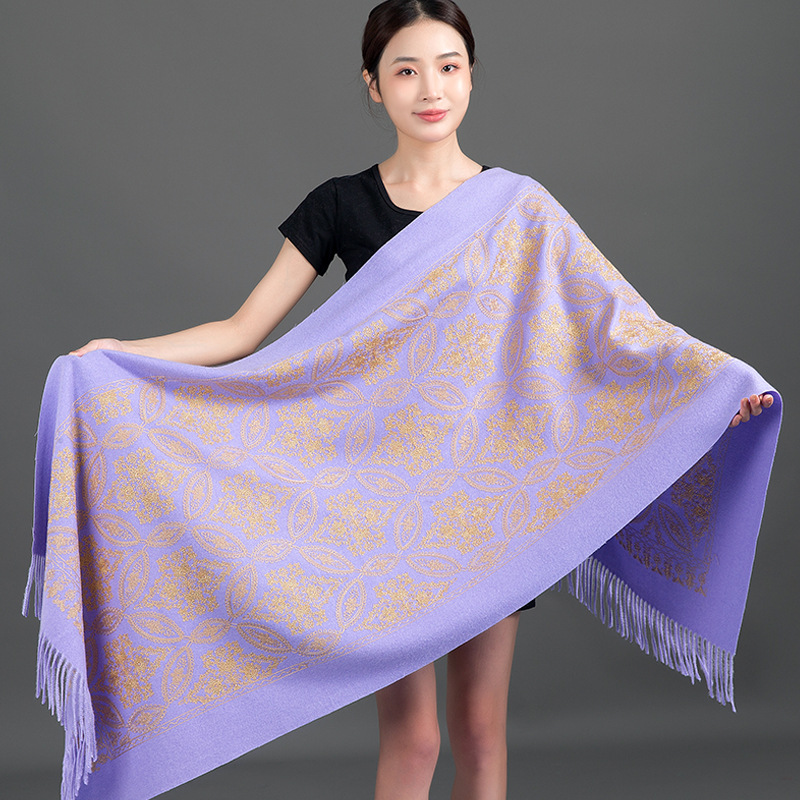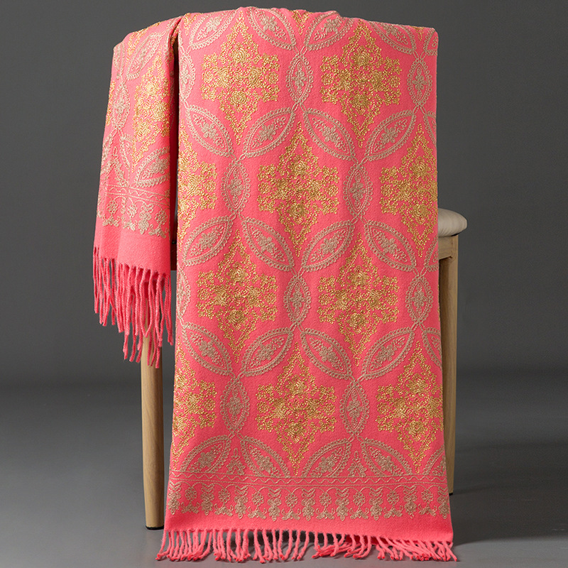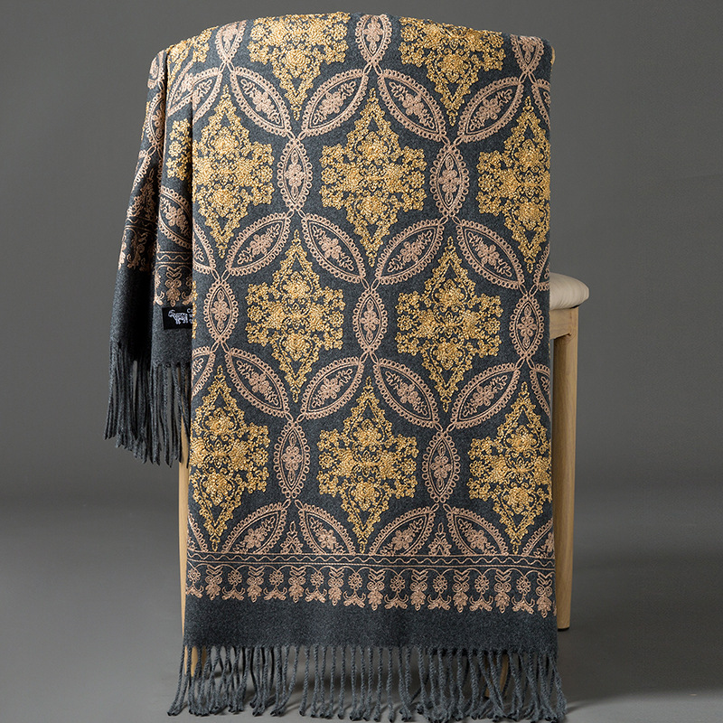 Autumn Winter Embroidered Golden Silk Lily Design In Xinjiang Cashmere
