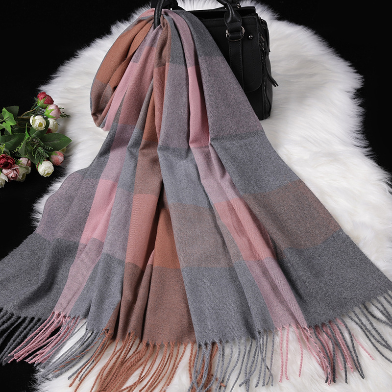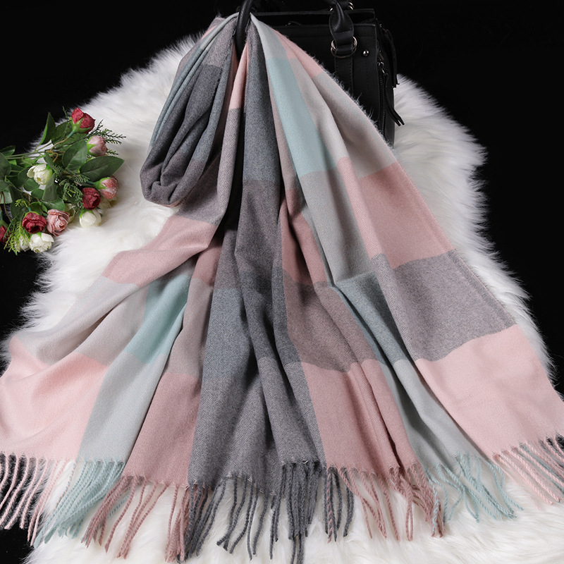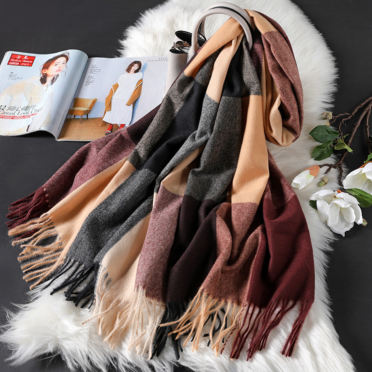 Autumn Winter New Women British Cashmere Checked Scarf Female 200x70 Double Side Warm Plaid Tassel Shawl Scarf