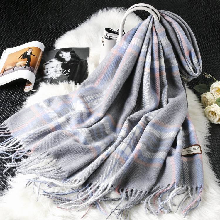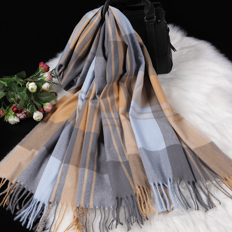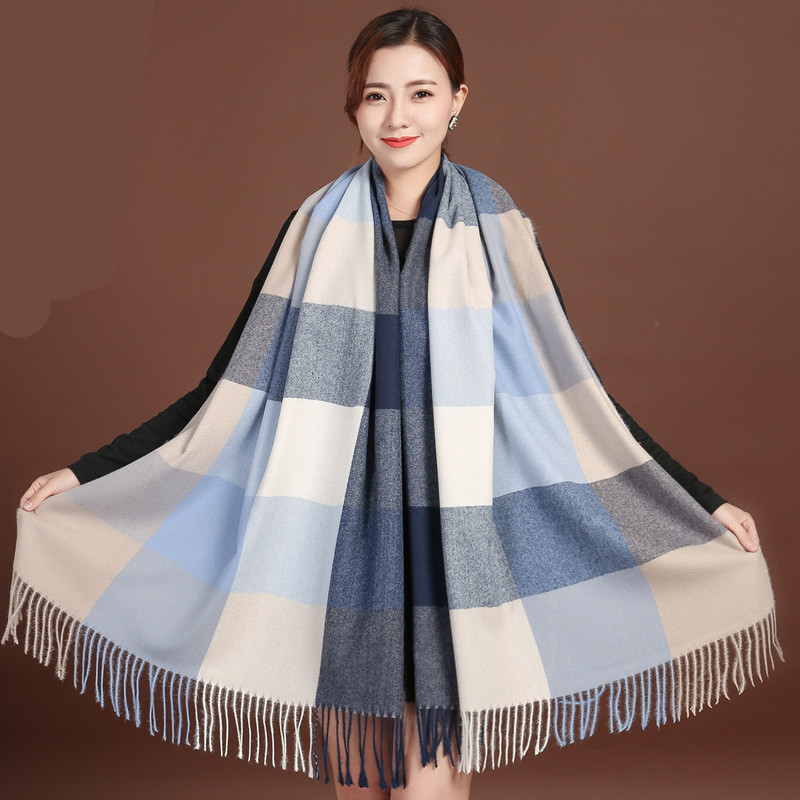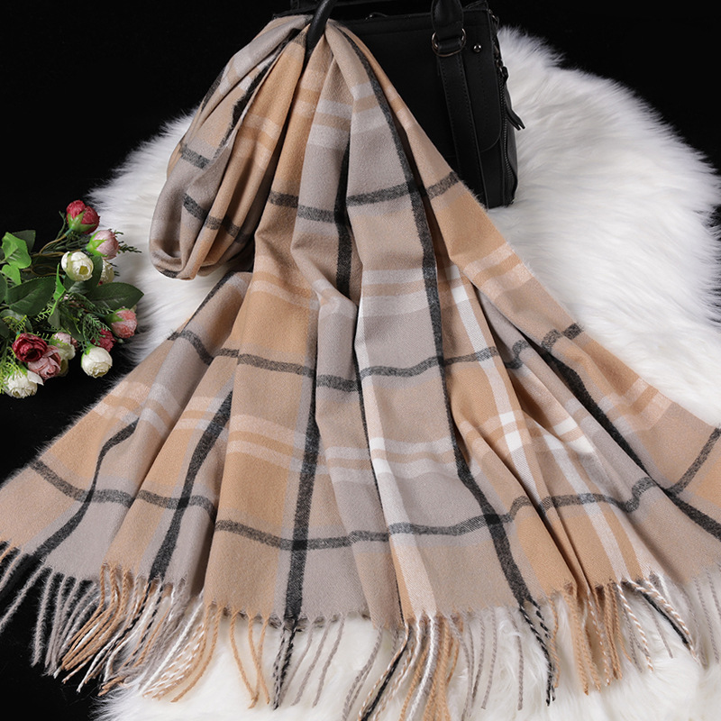 Autumn Winter New Women British Cashmere Checked Scarf Female 200x70 Double Side Warm Plaid Tassel Shawl Scarf -