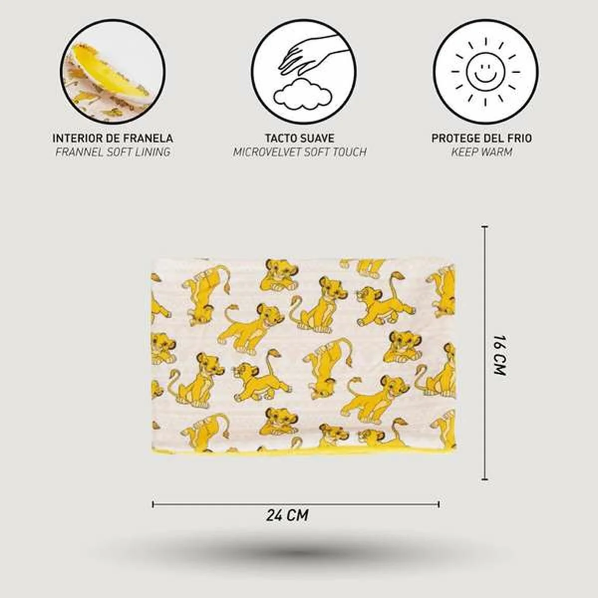 La braga de cuello The Lion King en color beige es un complemento textil diseñado especialmente para proteger del frío durante la temporada de invierno. Fabricada con 100 % poliéster, este tejido sintético proporciona un tacto suave y una alta resistencia al desgaste, además de ser fácil de lavar y mantener, garantizando durabilidad y comodidad en su uso diario. La talla S asegura un ajuste adecuado para usuarios que busquen una medida compacta, adaptándose a diferentes contornos de cuello para ofrecer un abrigo eficiente sin pérdida de movilidad. Su diseño funcional como braga de cuello permite cubrir eficazmente la zona cervical y parte del rostro, minimizando la exposición al frío y al viento, lo que la convierte en una prenda ideal para actividades al aire libre o desplazamientos urbanos en climas fríos. Además, la estética inspirada en The Lion King aporta un toque característico y distintivo sin renunciar a la practicidad. Este producto cumple una función clara de abrigo y protección térmica, haciendo de esta braga un accesorio útil y versátil para el día a día en invierno.