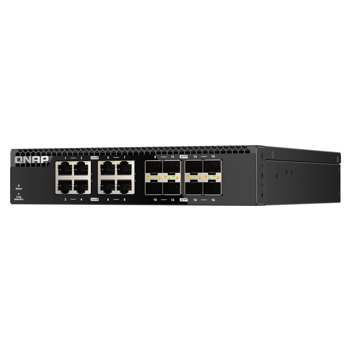 Más puertos de 10 GbE y más ahorro de espacio a un precio asequible. El QSW-3216R-8S8T de QNAP es un switch no gestionable de montaje en rack y anchura media con ocho puertos de fibra SFP+ 10GbE y ocho puertos RJ45 10GbE. Con una instalación Plug and Play, el QSW-3216R-8S8T ofrece funciones de detección y bloqueo de bucles de red, lo que facilitará la tarea de crear un asequible entorno de red de alta velocidad tanto para su hogar como para su negocio. Con un diseño de anchura media, el QSW-3216R-8S8T se puede colocar cómodamente en entornos de trabajo sin ocupar demasiado espacio y se pueden instalar dos en un único espacio de bastidor de 1U. El QSW-3216R-8S8T se fabrica en Taiwán (MIT) y proporciona una solución de red fiable y de alta calidad.