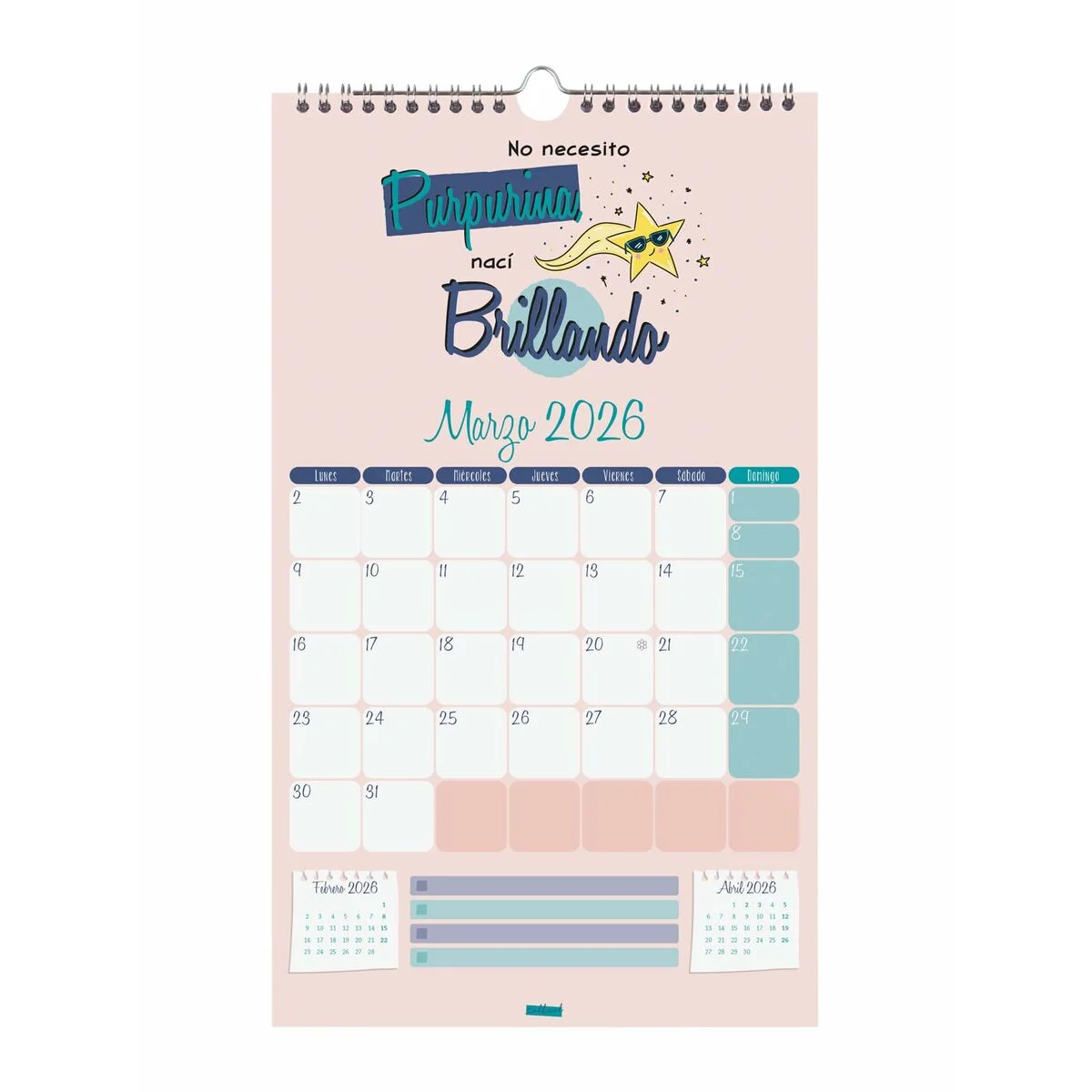 El Calendario de pared Basic de la marca Finocam es un práctico y funcional calendario de pared que destaca por su presentación en formato 21 x 36 cm y por estar fabricado en papel de alta calidad de 160 g/m², libre de cloro y certificado FSC, lo que garantiza un producto respetuoso con el medio ambiente. Este calendario, diseñado en idioma español, presenta una distribución mensual con vista completa de cada mes desde enero hasta diciembre, facilitando la organización a lo largo del año. Su encuadernación mediante espiral doble proporciona mayor durabilidad y facilidad para cambiar de mes, además de contar con un colgador integrado para su colocación directa en la pared. El diseño multicolor no solo aporta dinamismo visual, sino que también ayuda a diferenciar fácilmente los contenidos que incluye, como festivos nacionales, días señalados, cambios de estación, calendario anual del año y siguiente, planificación anual y listado de festivos de las comunidades autónomas y capitales, haciendo de este calendario una herramienta completa para la gestión del tiempo. Adicionalmente, incorpora una selección de pegatinas temáticas y frases con toques de humor y espontaneidad que aportan un carácter distintivo y alegre a cada mes, reflejando un estilo auténtico y cercano. La combinación de todas estas características hace que el Calendario de pared Basic Finocam sea una opción ideal para quienes buscan un producto funcional, ecológico y con elementos de motivación visual para acompañar la planificación diaria durante todo el año. En suma, este calendario ofrece funcionalidad, calidad y originalidad en un formato adaptado a cualquier espacio.
