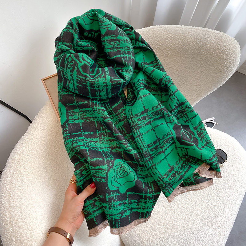 Camellia Double-sided Scarf For Women Extra Thick Dual-use Fashion -