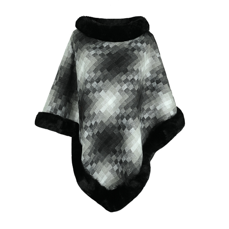 Cape Colored Plaid Thermal Knitting Shawl Women's Coat -
