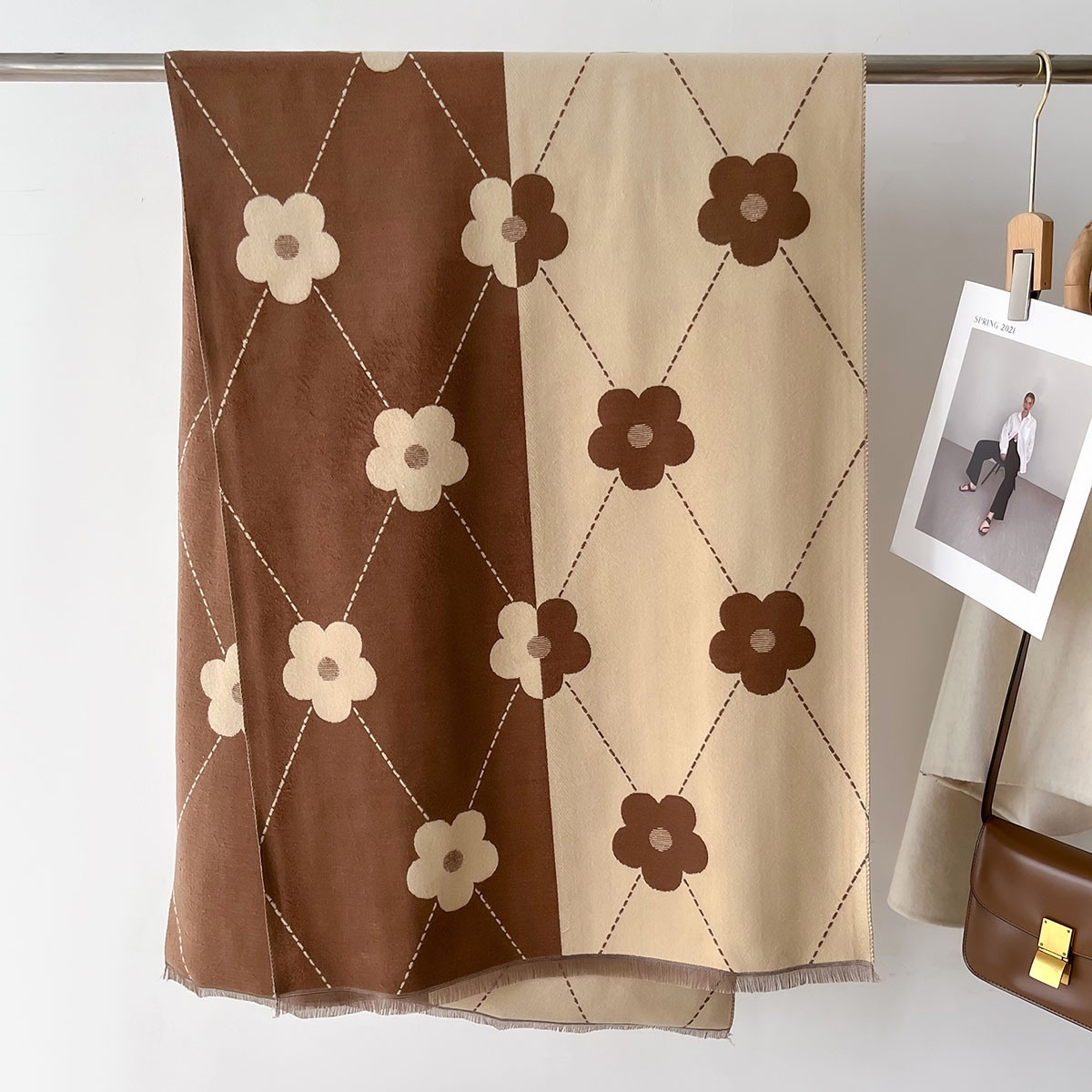 Cashmere Color Matching Line Warm Scarf Flower