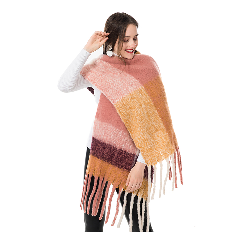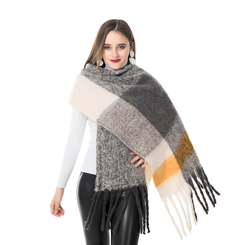Check print fringed cashmere scarf