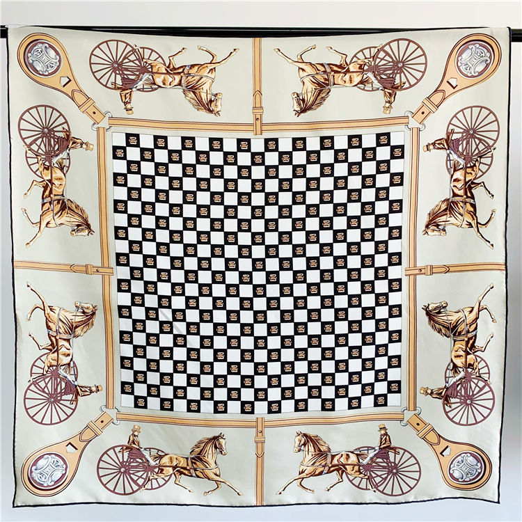 Classic Carriage Silk Twill Large Square Scarf Shawl Elegant Temperament -