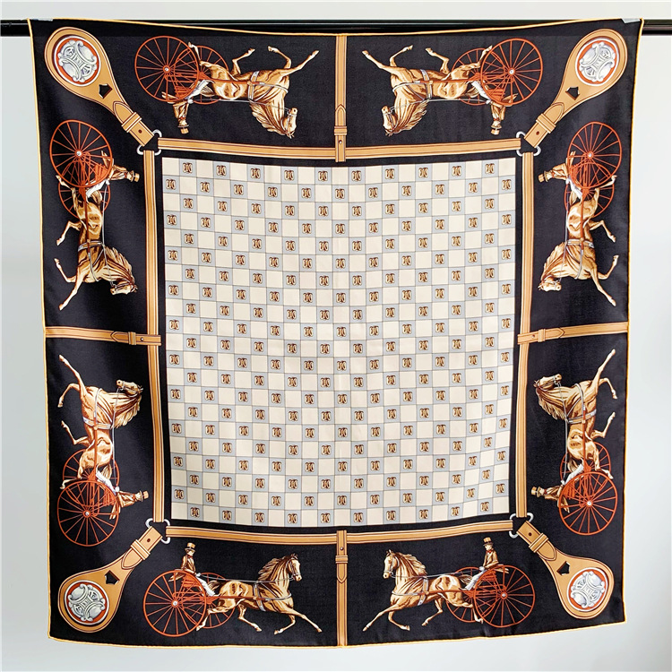 Classic Carriage Silk Twill Large Square Scarf Shawl Elegant Temperament