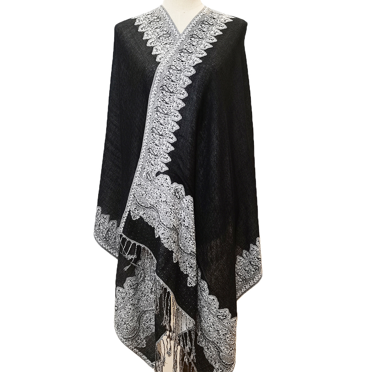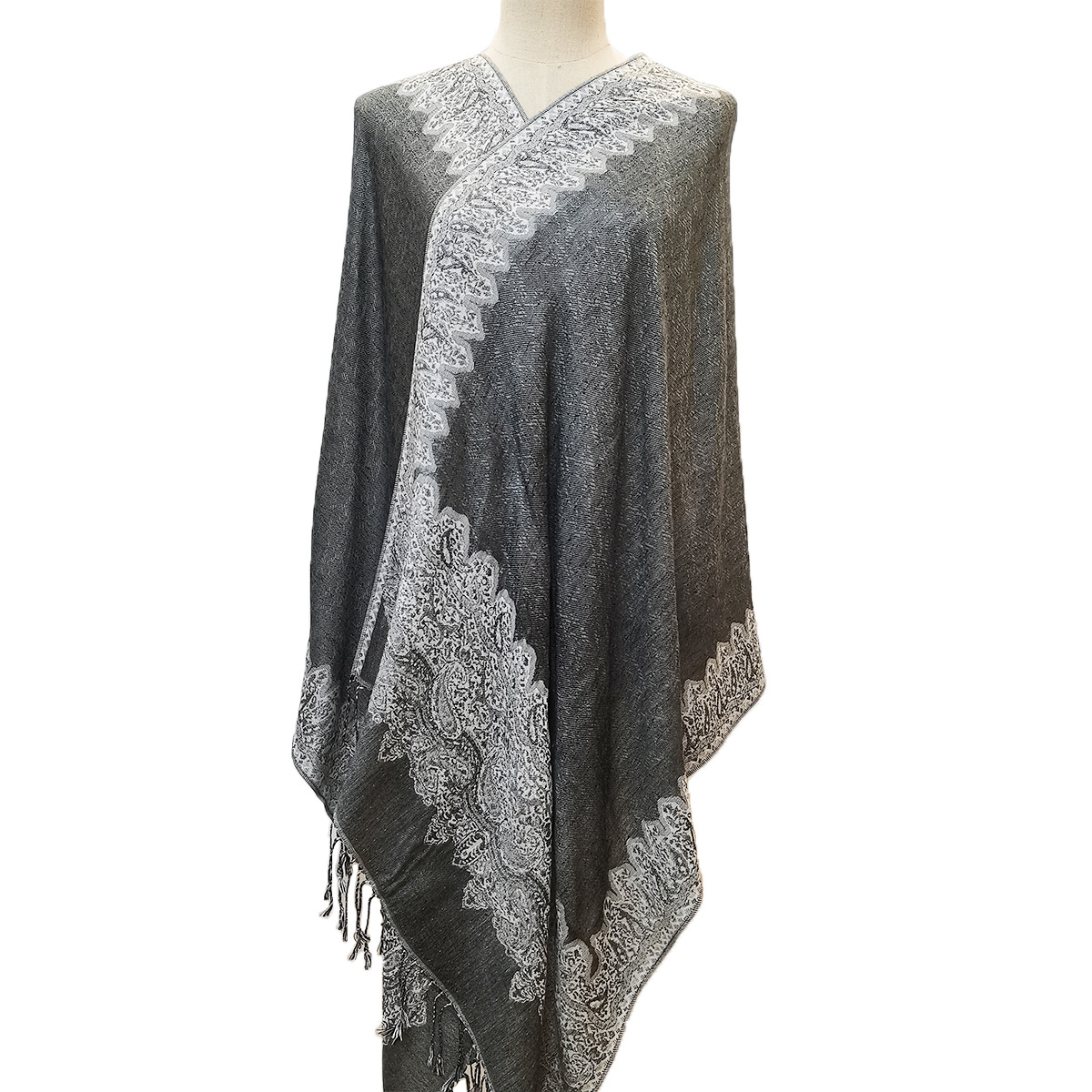 Classic Cashmere-like Fashion Jacquard Cashew Tassel Scarf