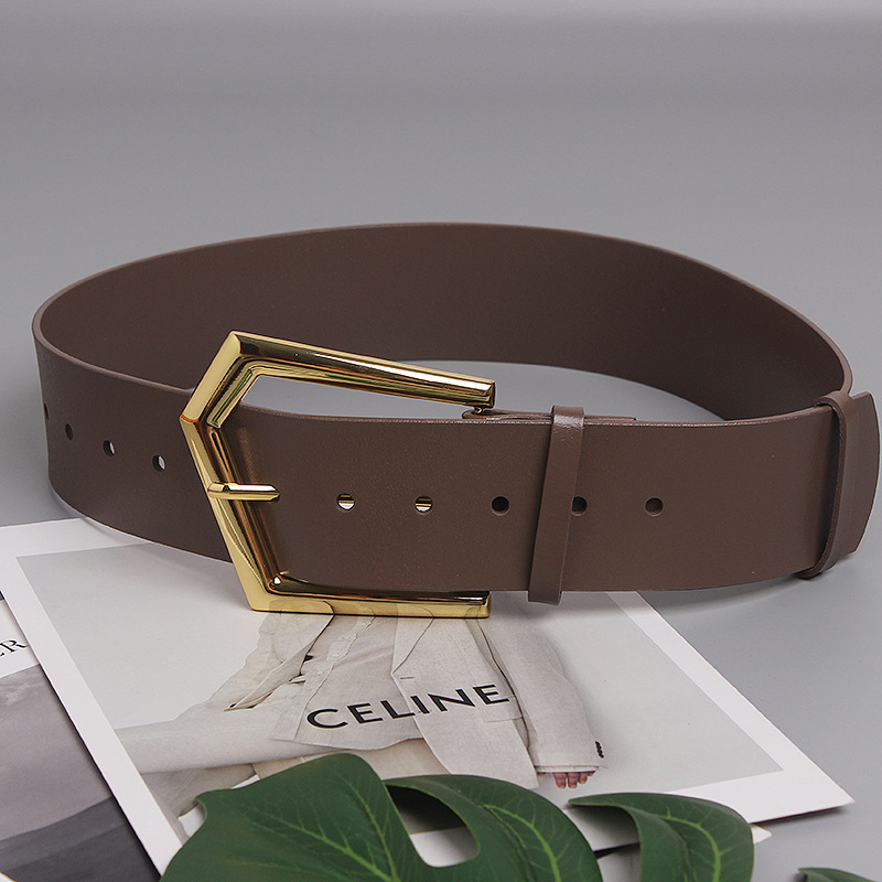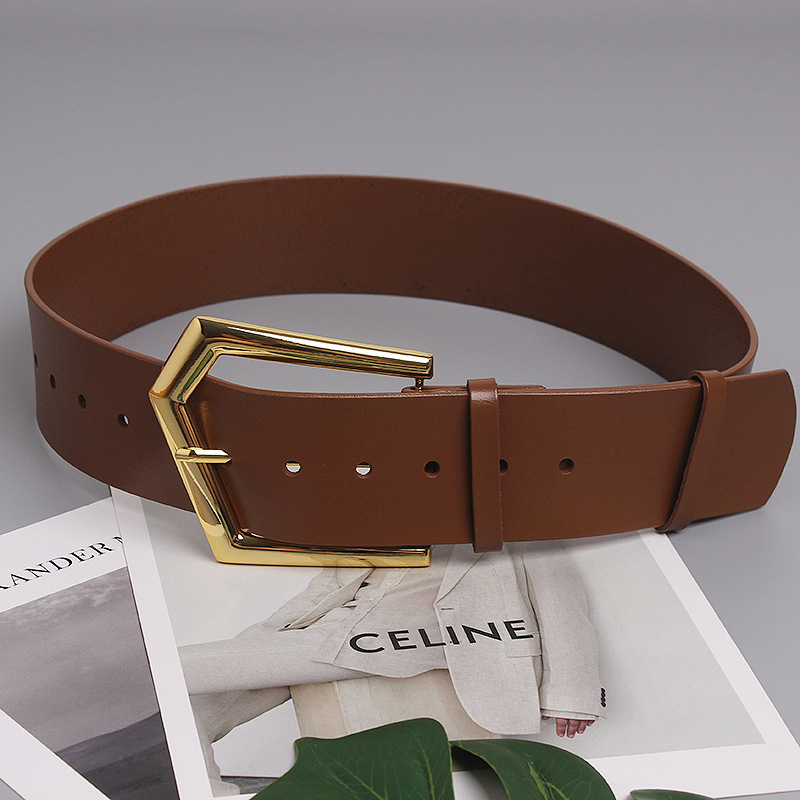 Concave Shape Large Pin Buckle Cowhide Wide Belt