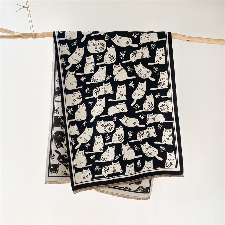 Cream Sweet Cat Artificial Cashmere Scarf Women's Autumn And Winter Korean Style -