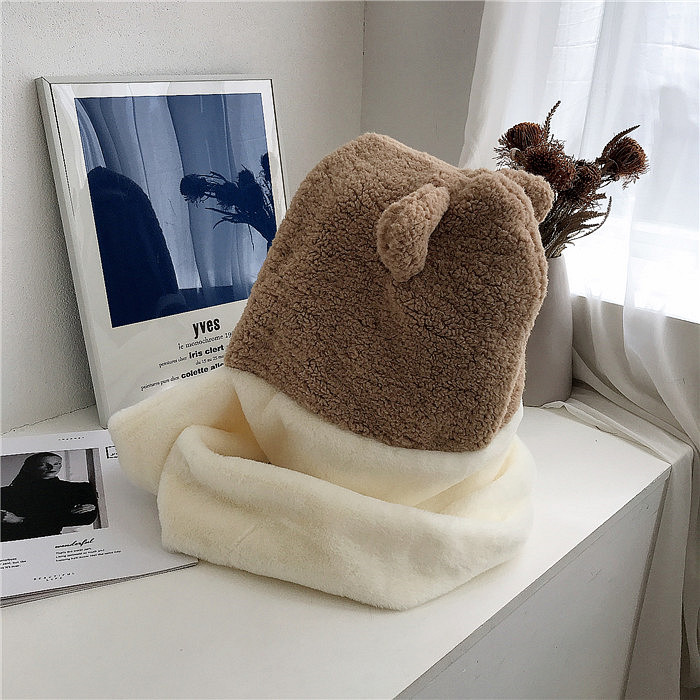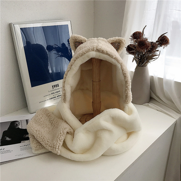 Cute Cat Ears Color Matching Plush Hooded Scarf