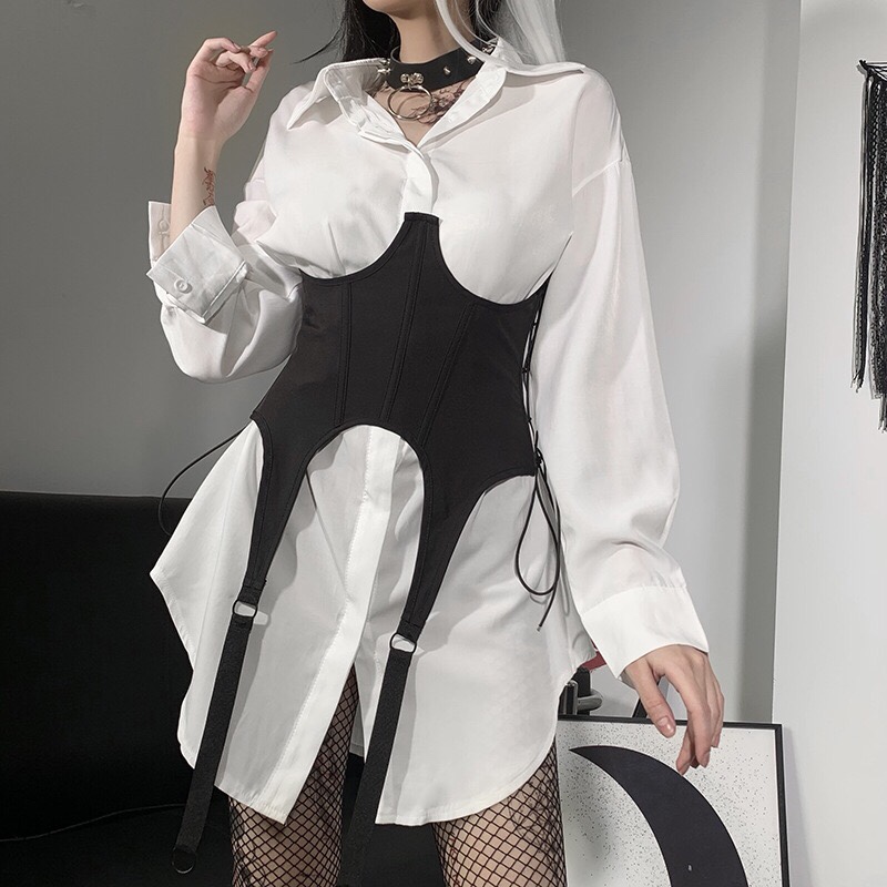 Dark Girl With Personalized Straps, Plastic Waist Tube Top, Abdomen Plastic Corset -