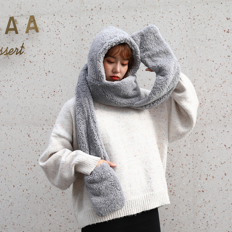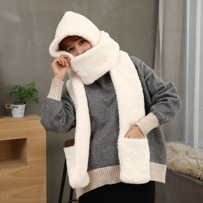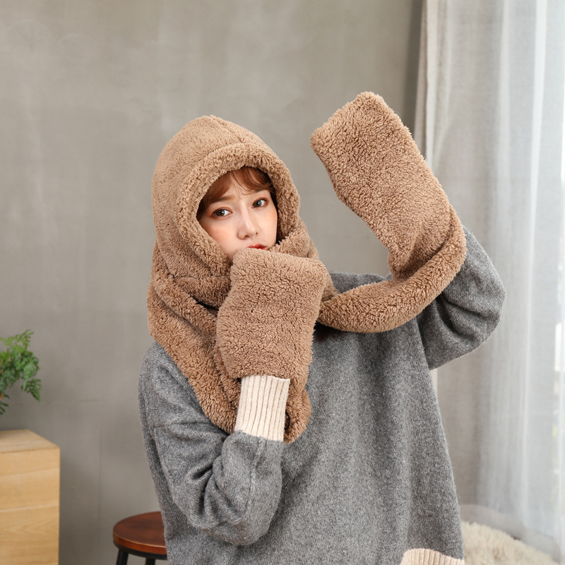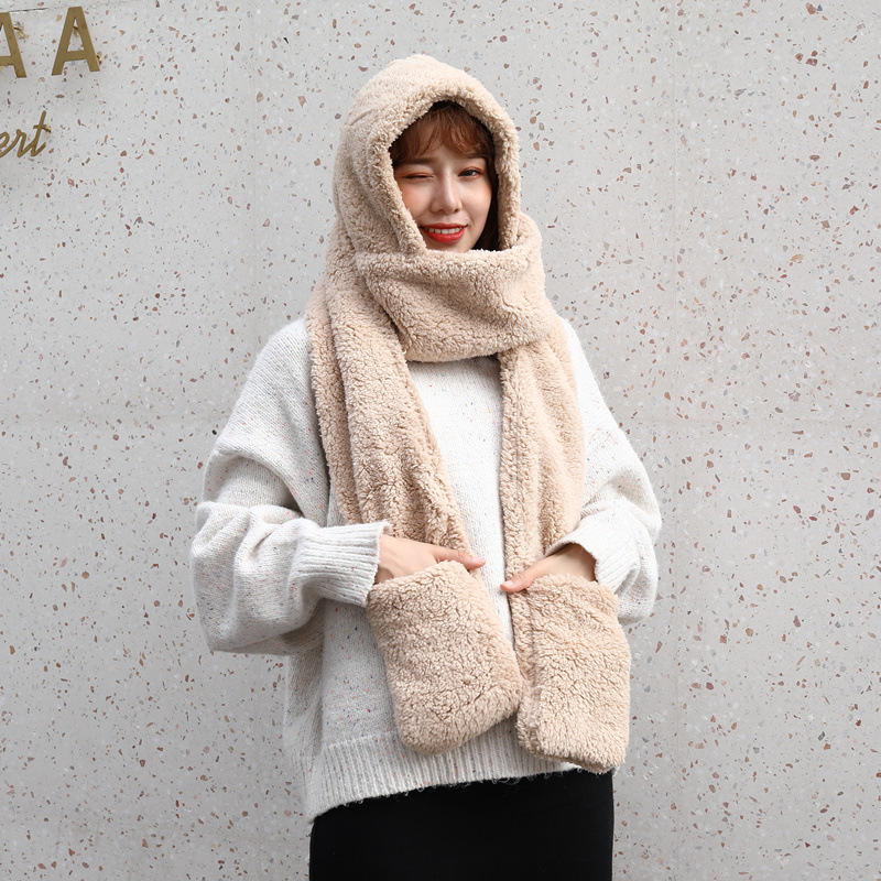 Double layer thick Plush wool scarf, hat and glove