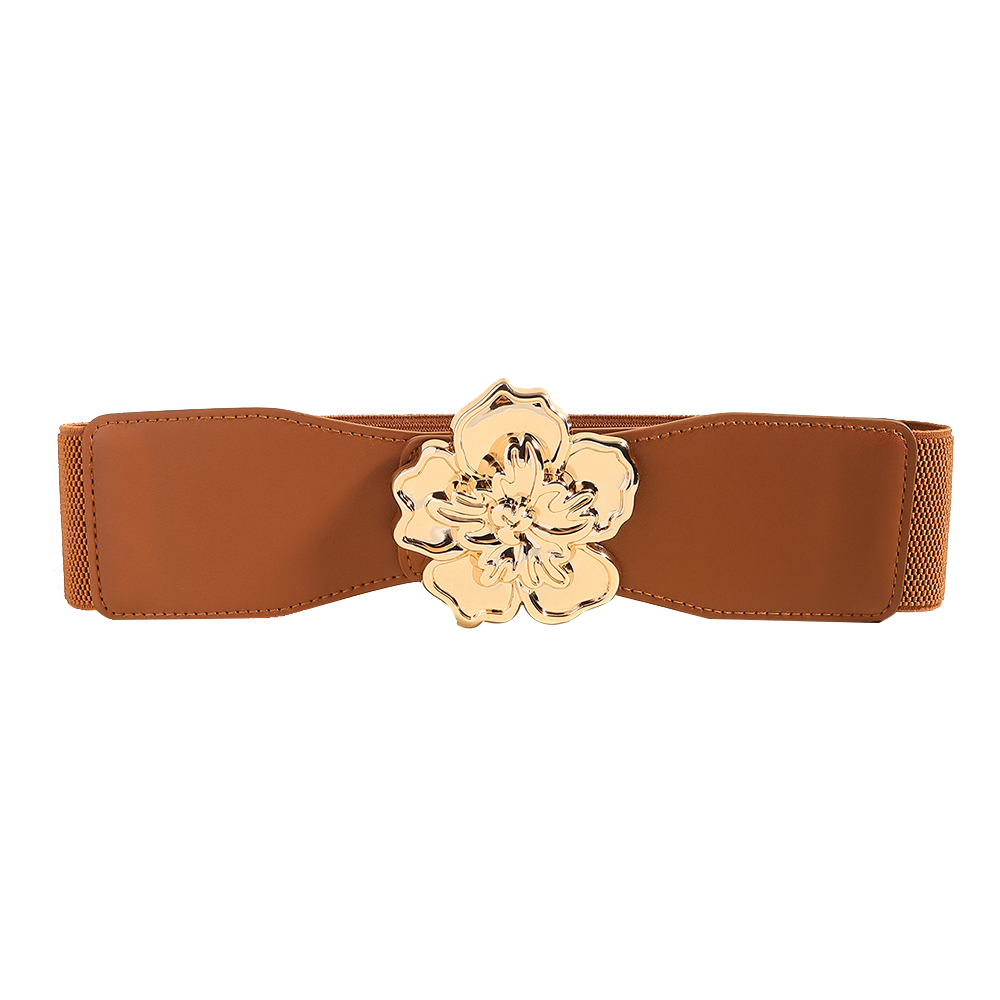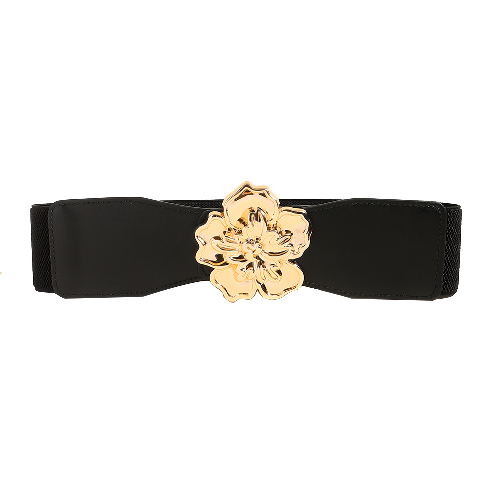 Elegant Women's Stretch Elastic Belt Metal Large Flower Needle Buckle Decorated Dress Shirt Waist Belt