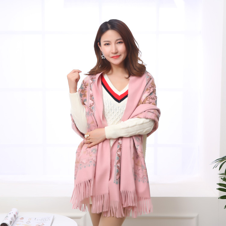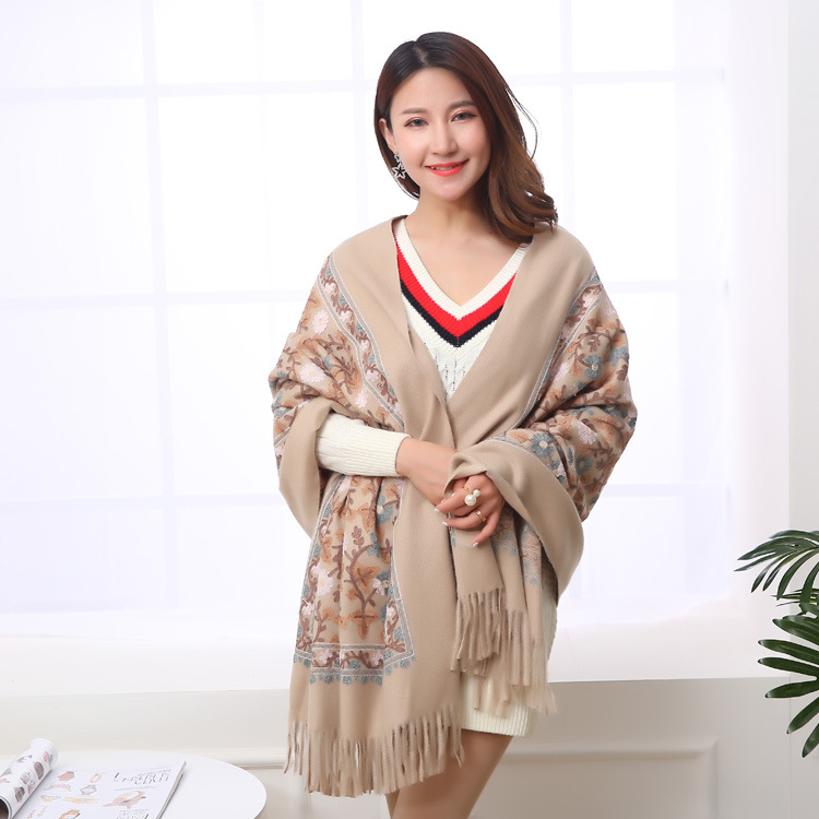 Embroidered Shawl Warmth And Thick Fringed Cashmere Scarf