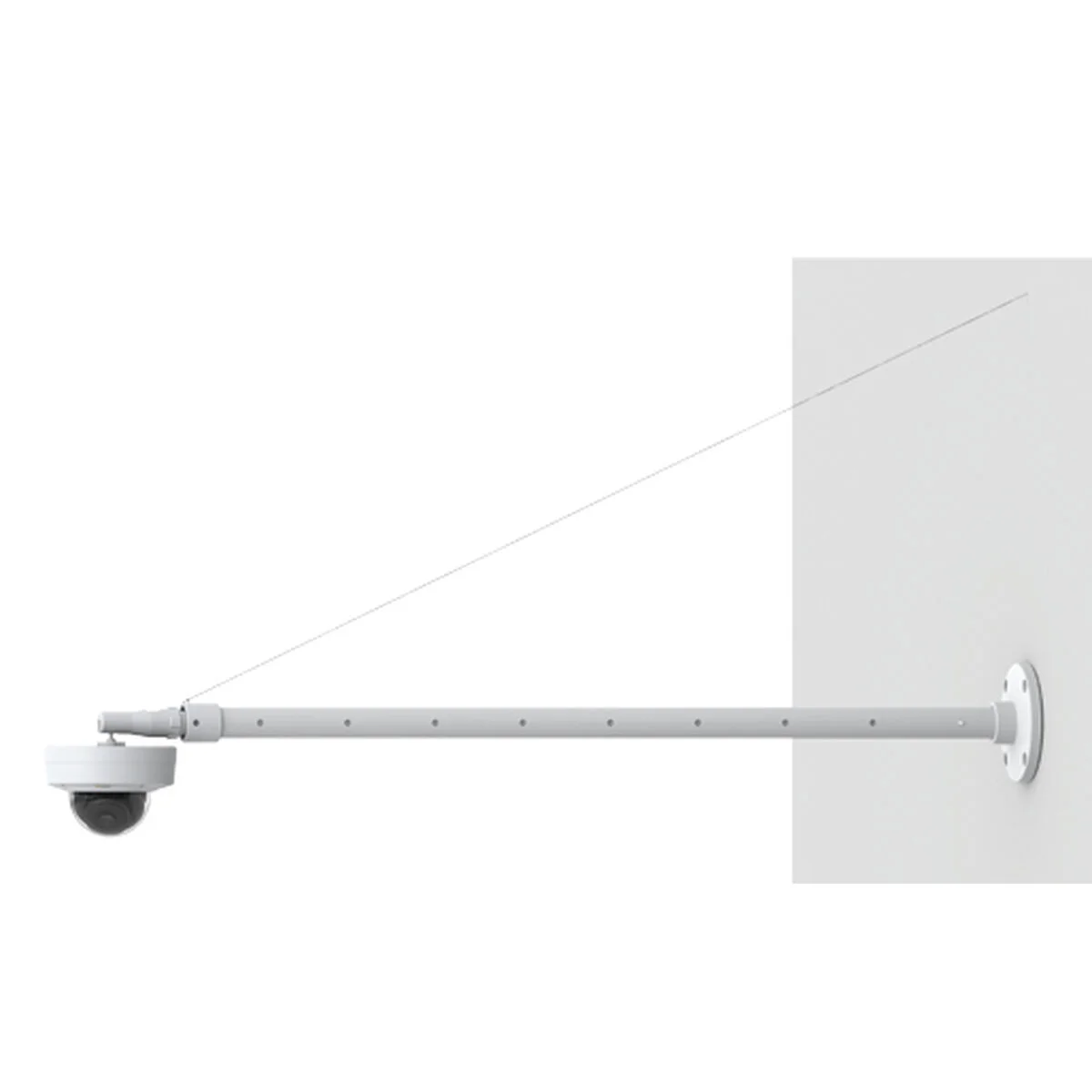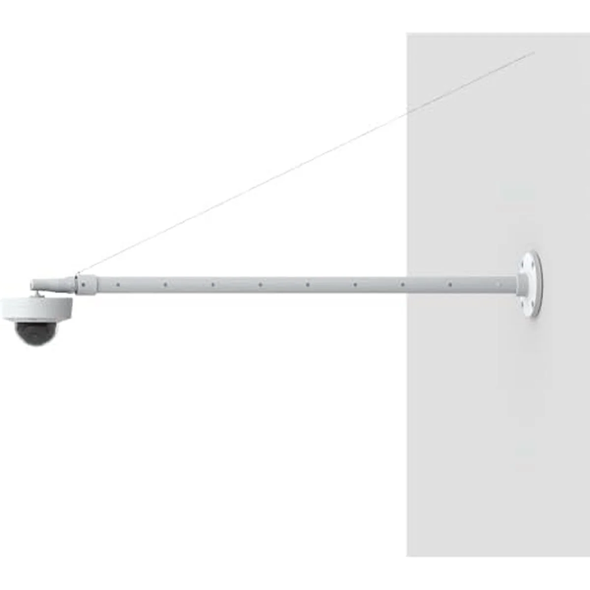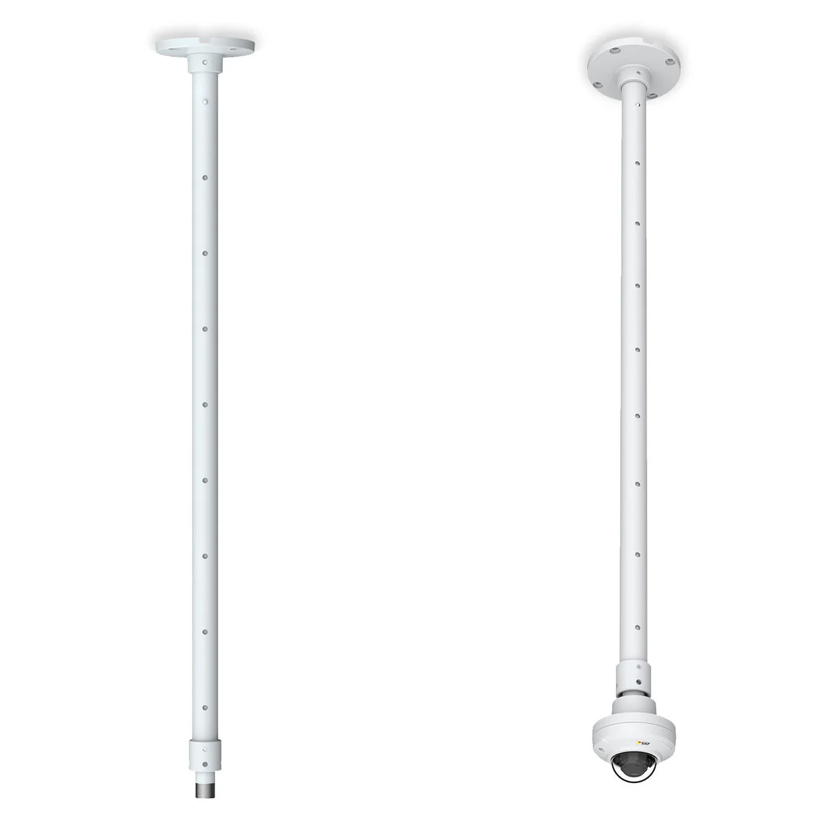 El AXIS T91B53 Telescopic Ceiling Mount es ideal para entornos comerciales y de minoristas, donde es necesario instalar un domo fijo o una cámara con caja bajo techos altos. La funcionalidad telescópica permite al instalador ajustar fácilmente y de manera segura la longitud de la extensión entre 1 m y 1,8m en intervalos de 10 cm. La base del montaje telescópico es compatible con AXIS T94F01P Conduit Back Box para un cableado seguro a través de tubos de 1/2” (M20). Este montaje en techo ligero y resistente se puede instalar también horizontalmente en paredes siempre que se asegure con AXIS Safety Wire.