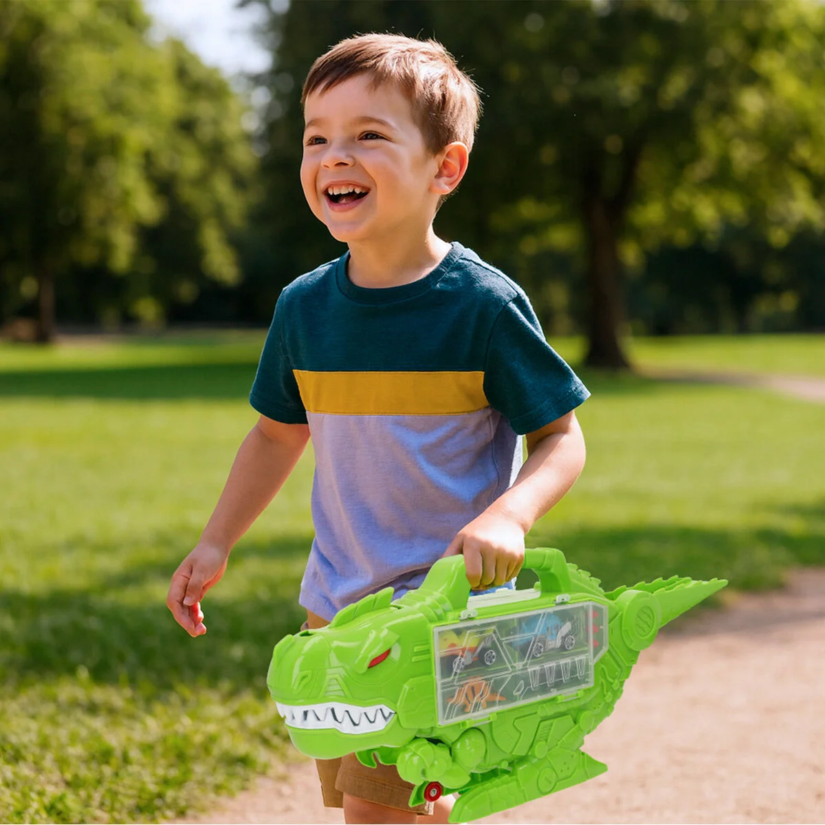 ¡Lleva la diversión a otro nivel con el increíble maletín portacoches Dino Destroyer de Teamsterz! Este dinosaurio es el compañero perfecto para los niños de +3 años que aman las aventuras llenas de acción. Con 8 huecos para guardar coches, mantiene todo en orden mientras los pequeños se preparan para grandes misiones.Incluye 2 coches, 2 dinosaurios y 3 flechas para el lanzador, listos para desatar carreras y batallas épicas. Además, cuenta con una rampa que va desde la cola hasta debajo de su boca y un lanzador con flechas para añadir más emoción a cada juego. Su diseño robusto y su forma de dinosaurio lo convierten en un juguete único que combina organización, creatividad y juego dinámico. Perfecto para desarrollar la imaginación y la motricidad fina, ¡los niños vivirán aventuras prehistóricas con el Dino Destroyer de Teamsterz!