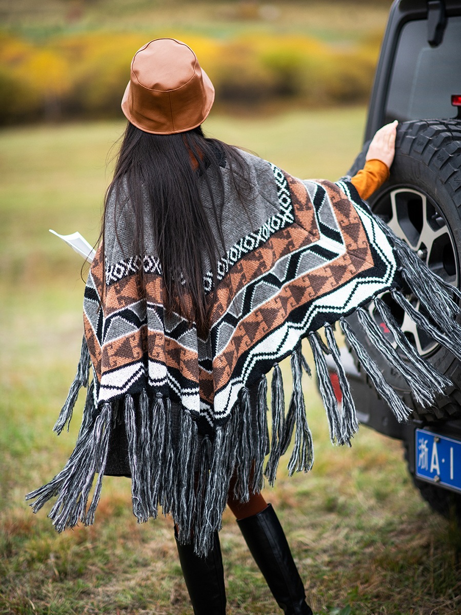 Ethnic Style Knitted Wool Tassel Cape And Shawl Thick Warm