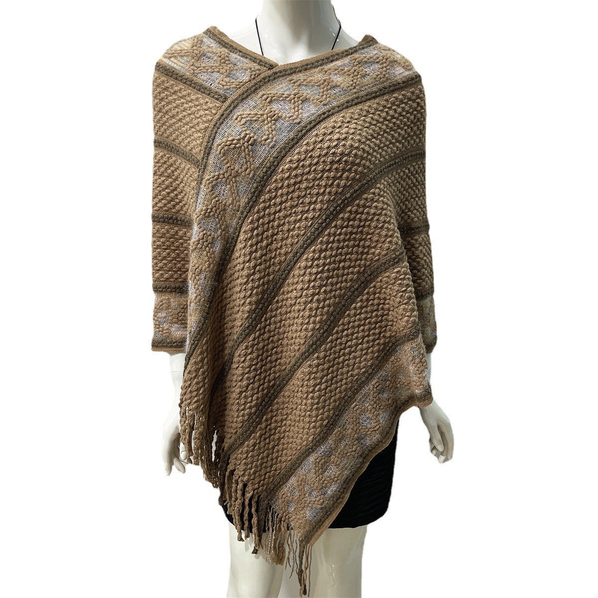 Ethnic Style Pullover Diamond Lattice Shawl -