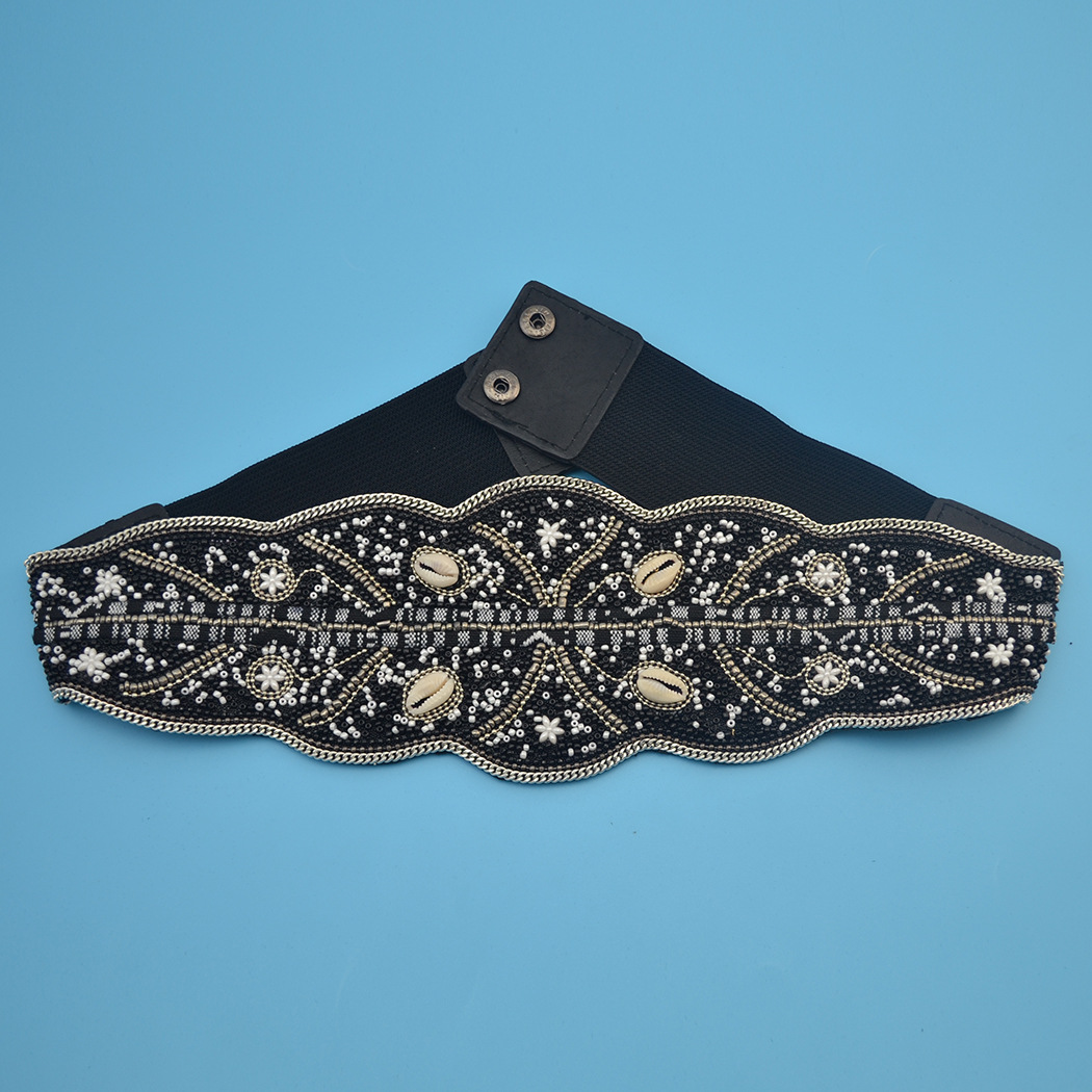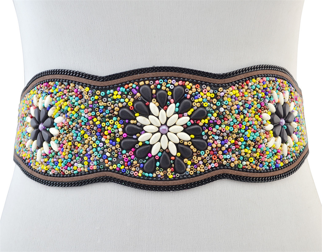 Ethnic Style Retro Waist Belt Turquoise Rice Bead Flower Belt -