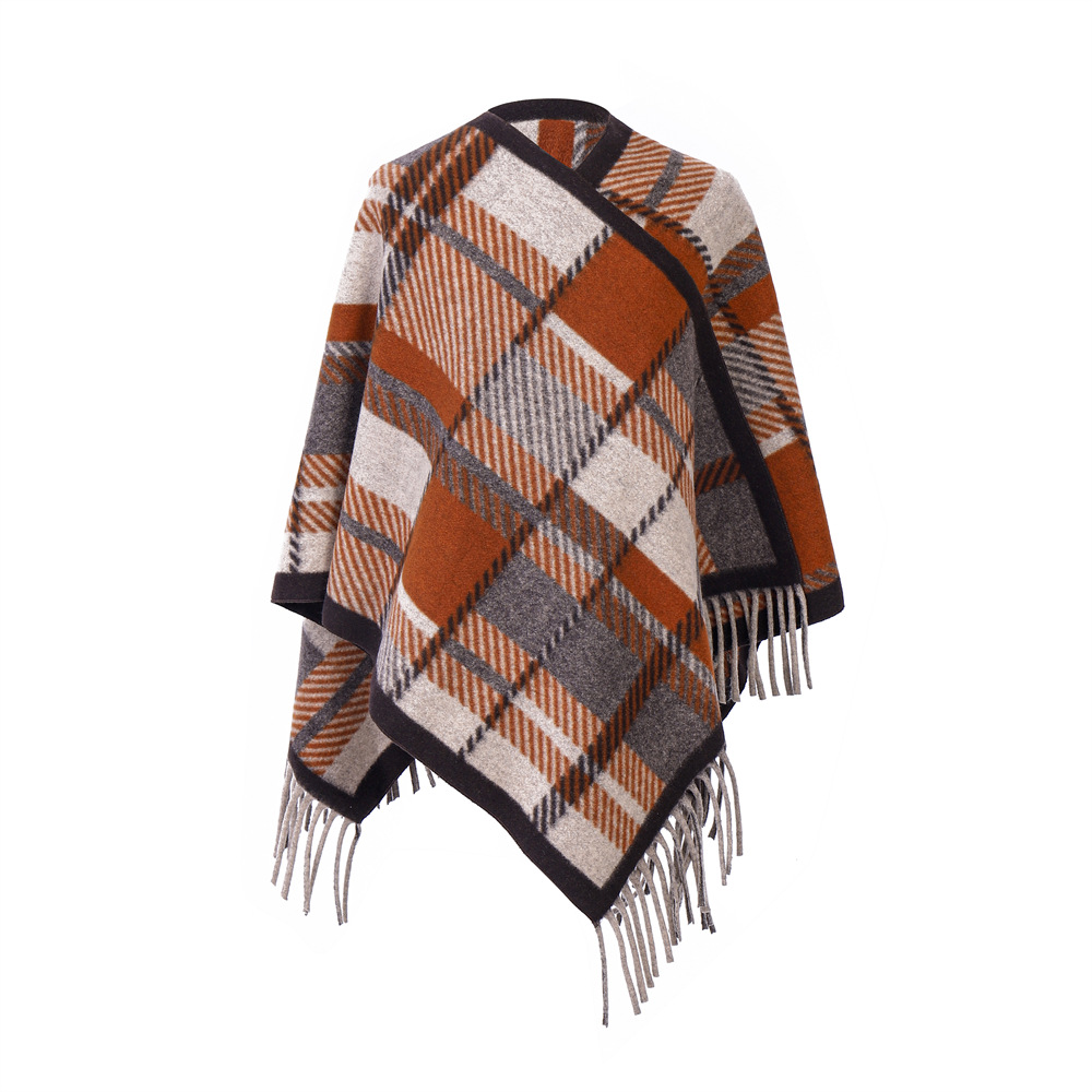 European And American Camel Tassel Plaid Shawl -