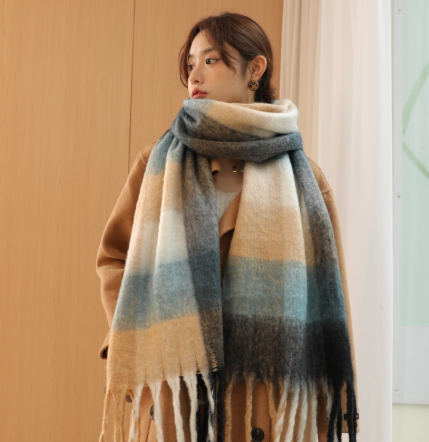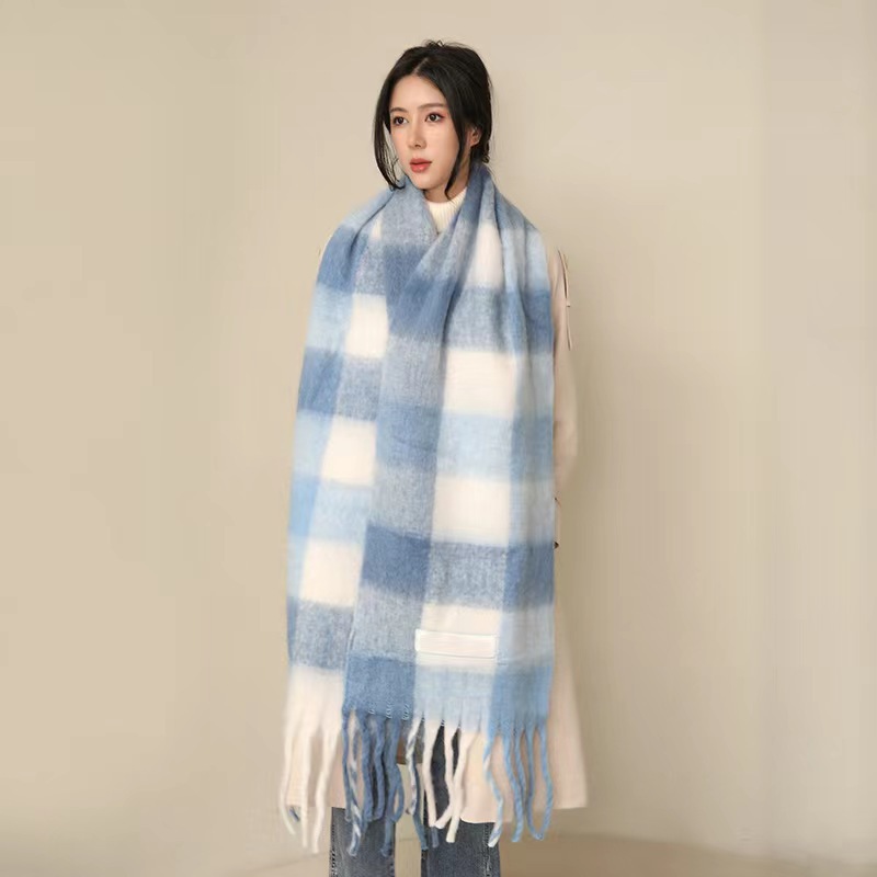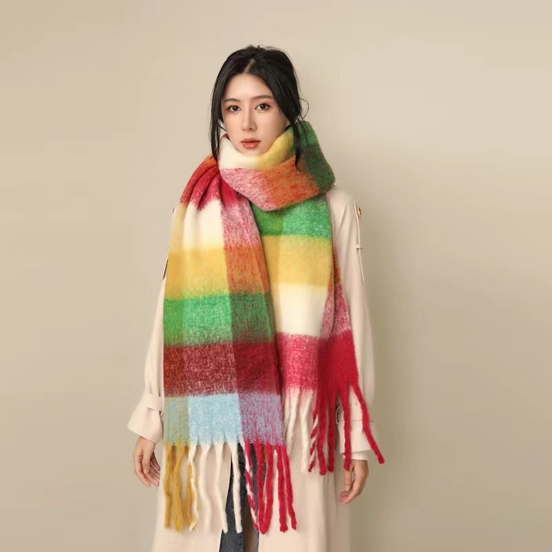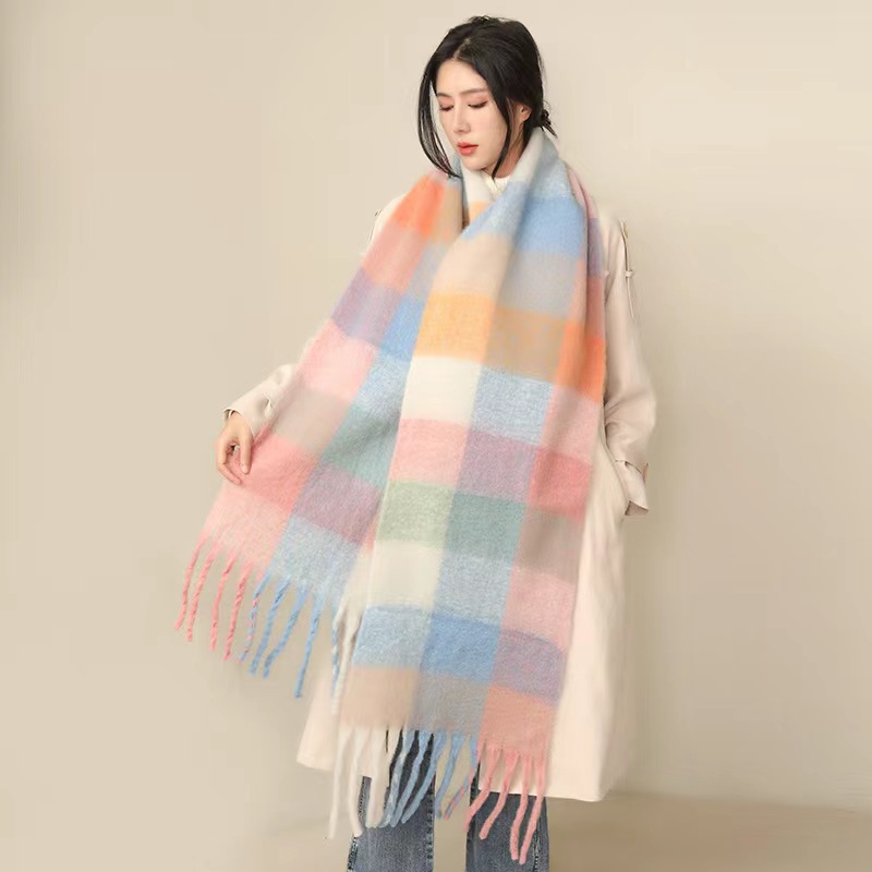 European And American Mohair Plush Warm Leisure Versatile Lattice Scarf