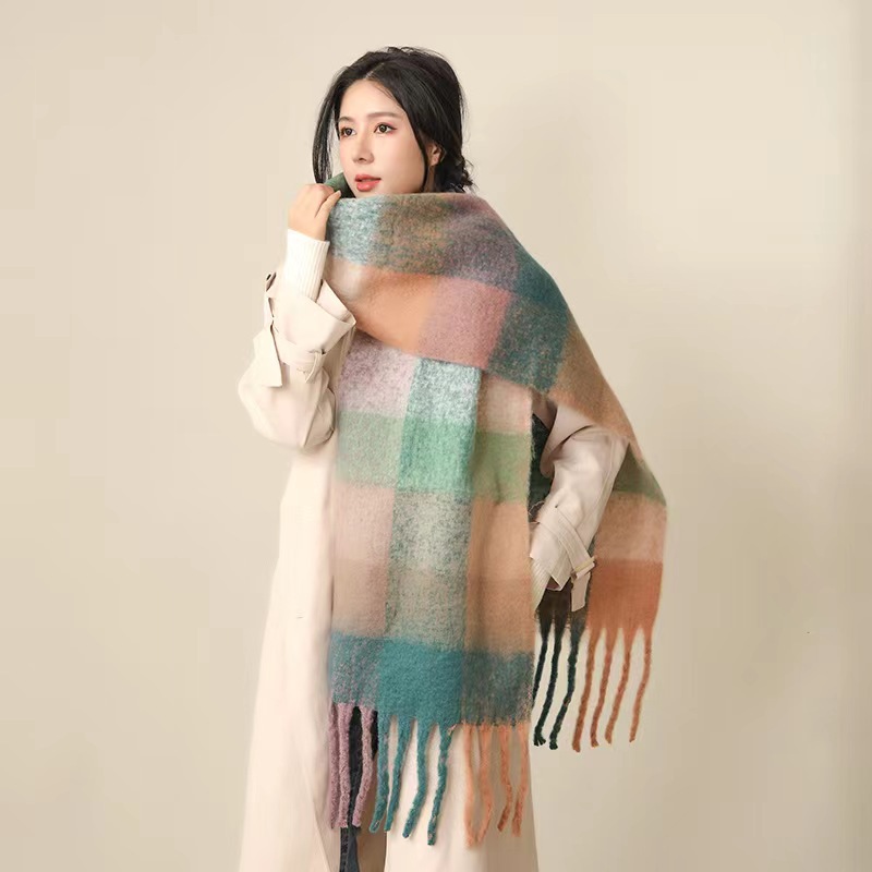 European And American Mohair Plush Warm Leisure Versatile Lattice Scarf -