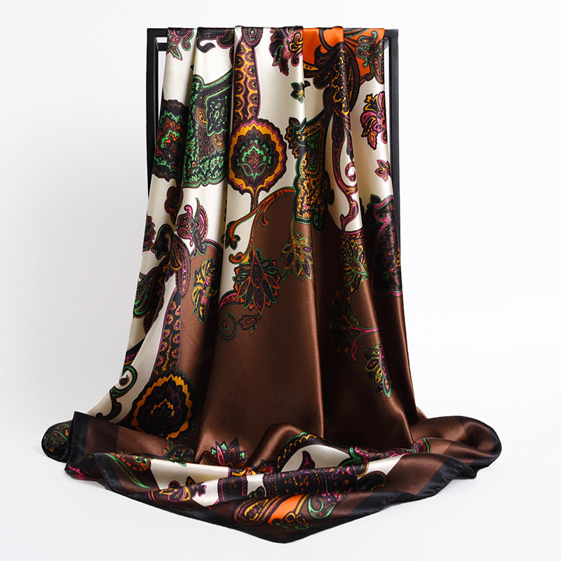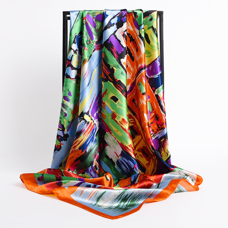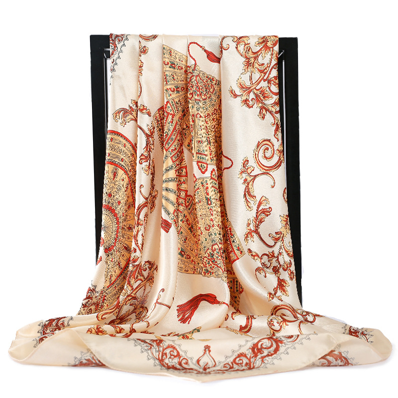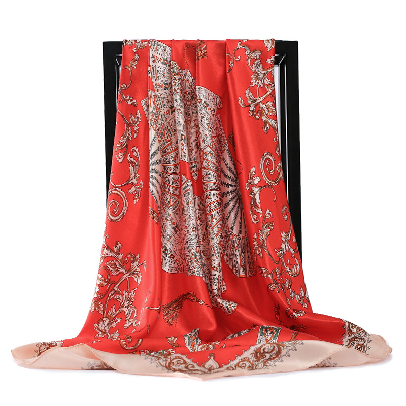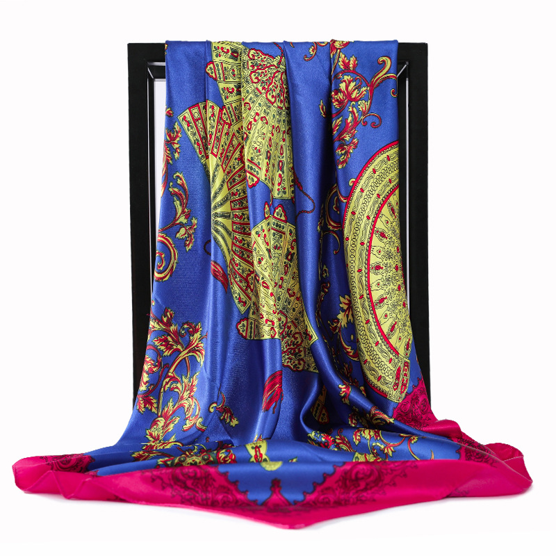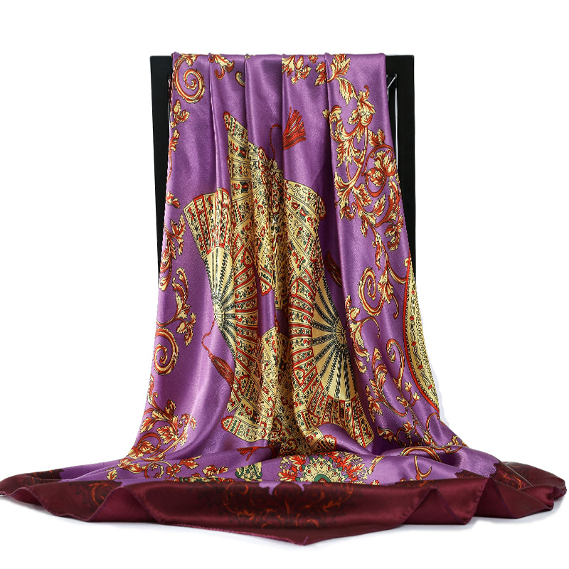 Fashion Retro Folding Fan 90cm Simulation Silk Satin Scarf Headscarf For Ladies -