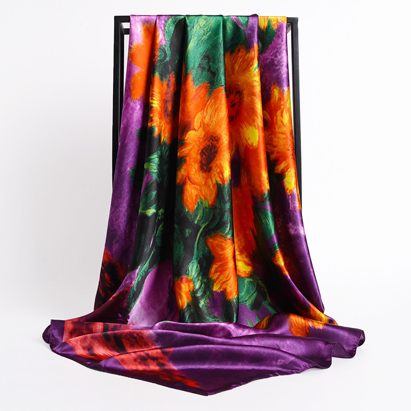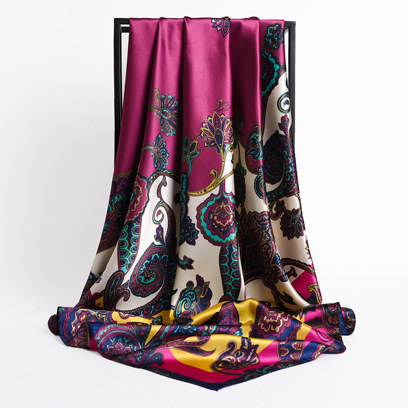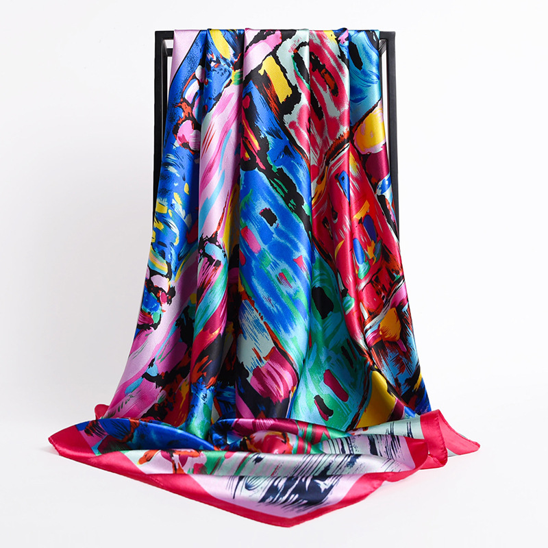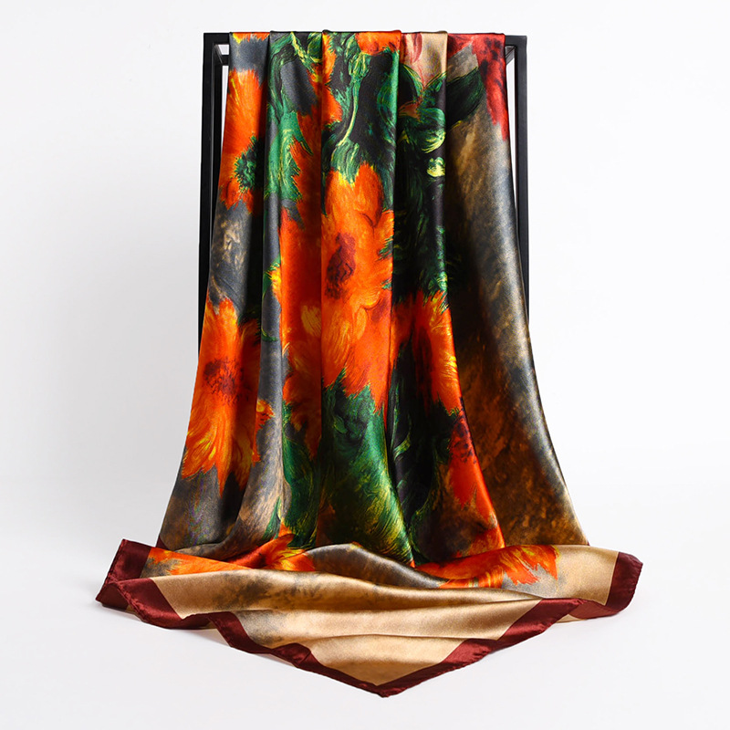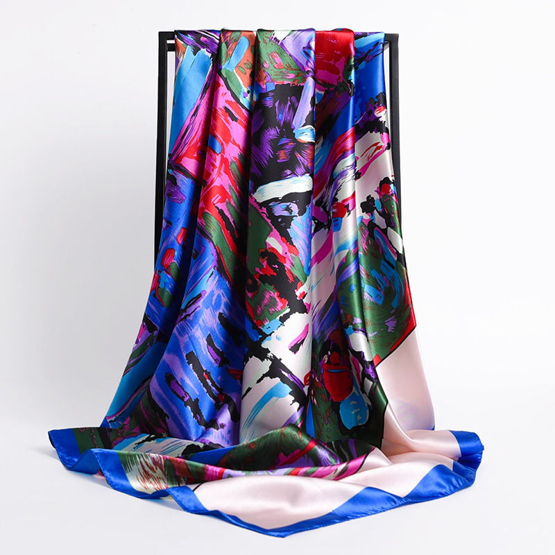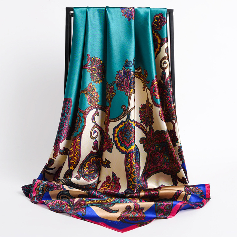 Fashion Retro Folding Fan 90cm Simulation Silk Satin Scarf Headscarf For Ladies -