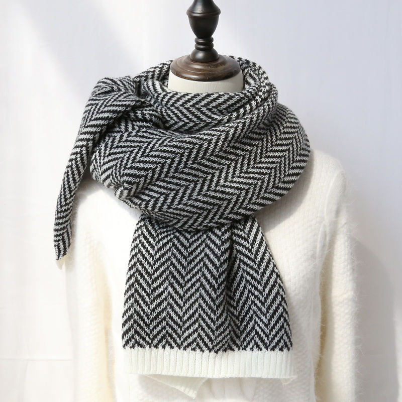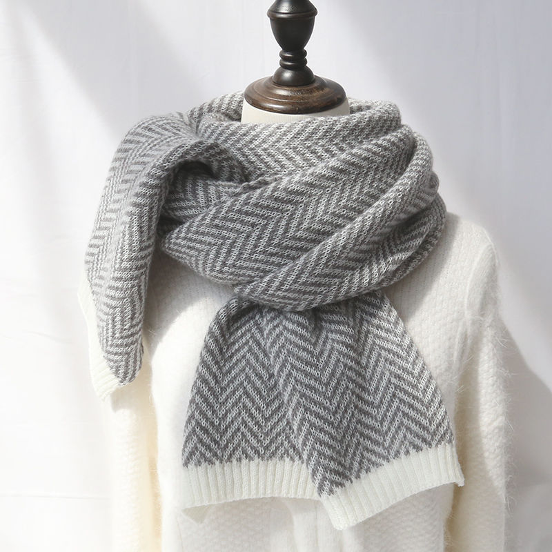Faux Cashmere Contrast Herringbone Knit Scarf
