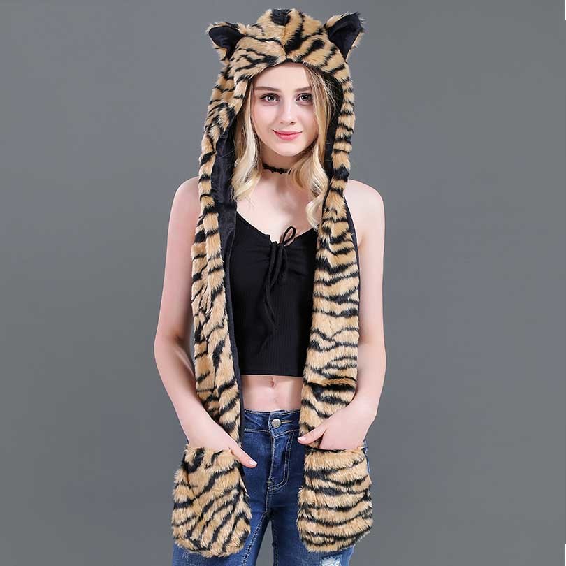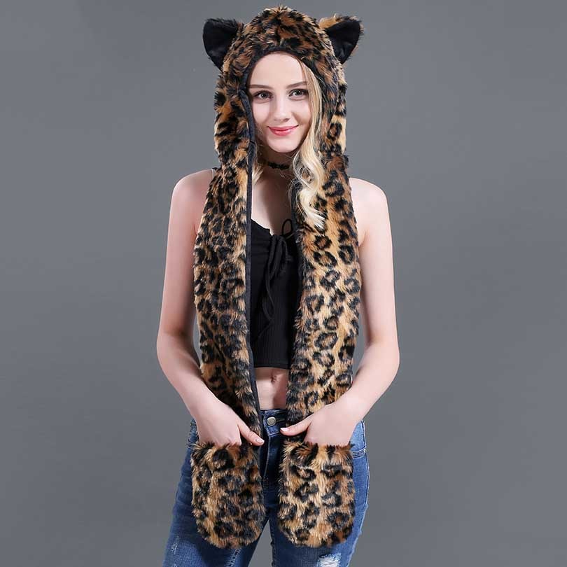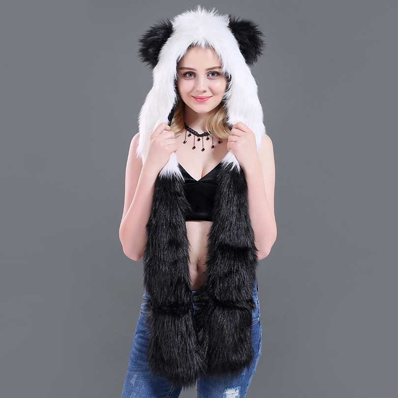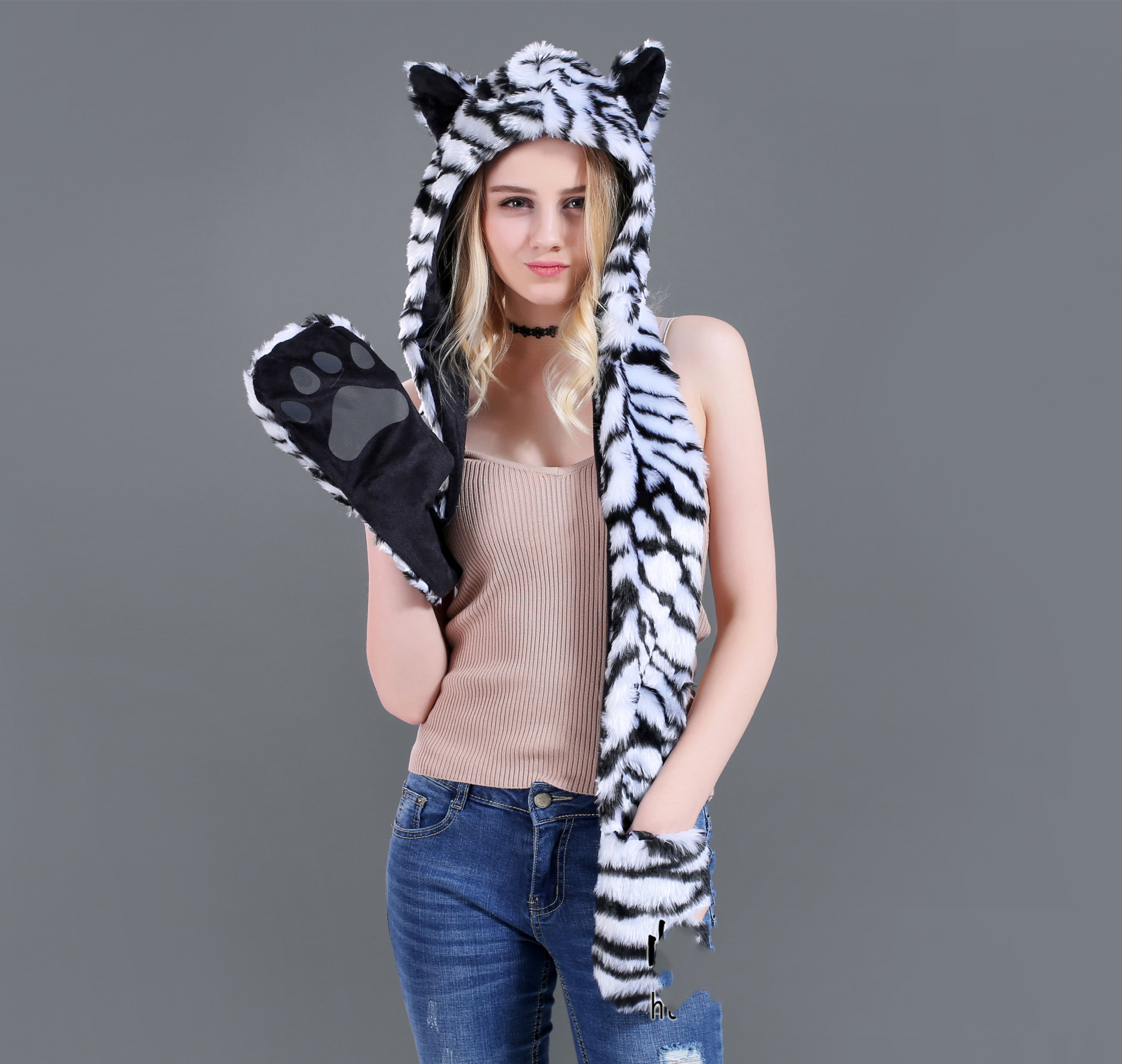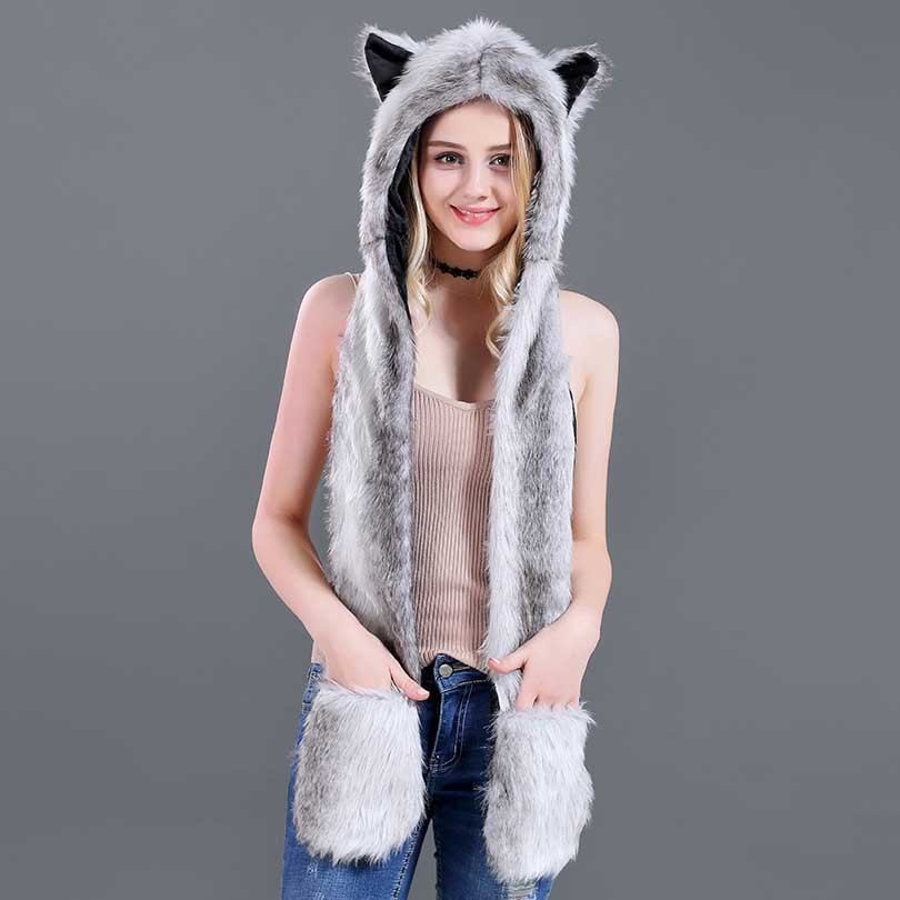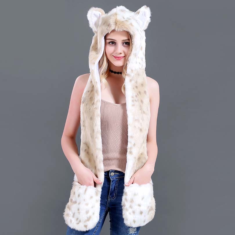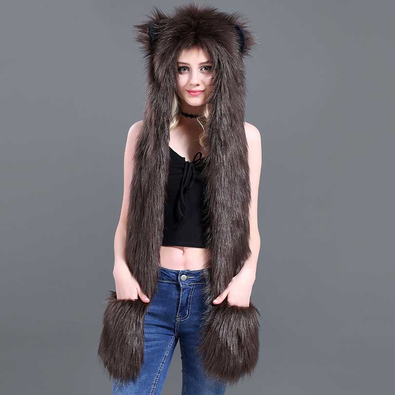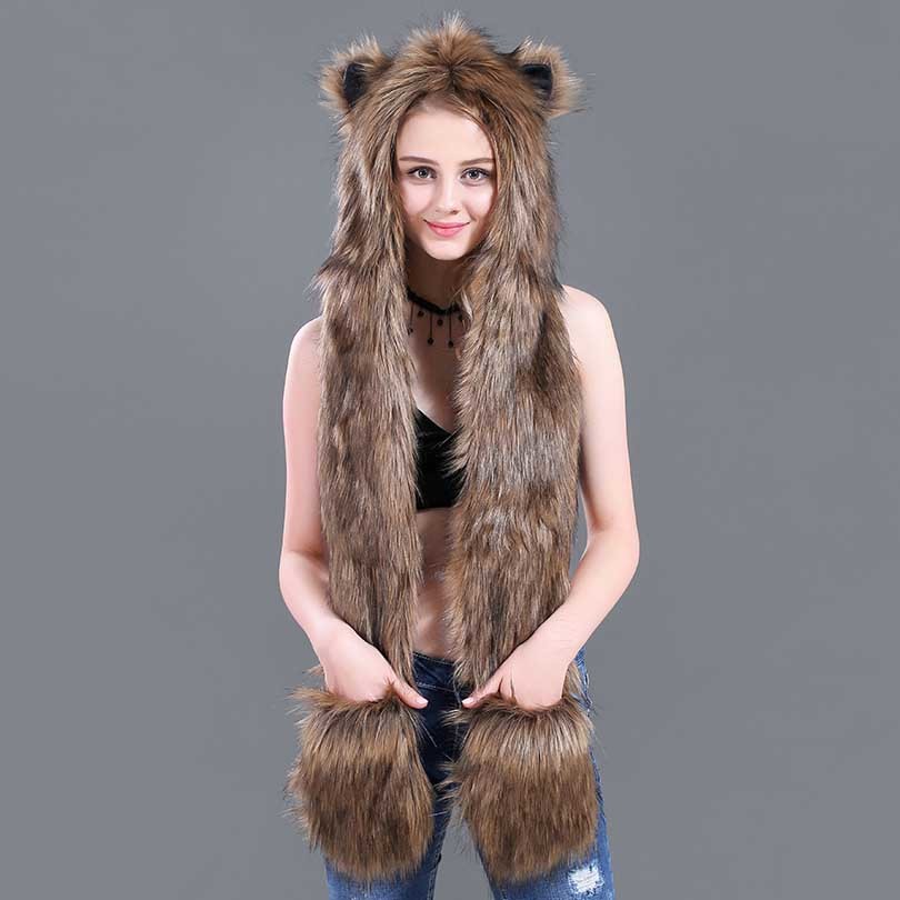 Faux Fur Straw Cartoon Animal Hat Scarf Gloves One