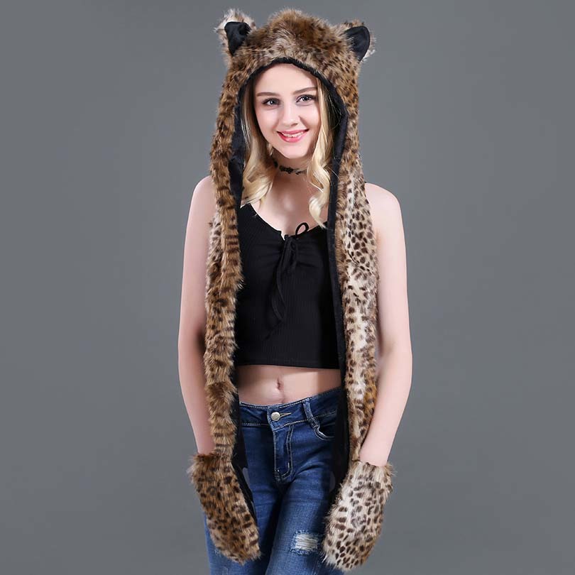 Faux Fur Straw Cartoon Animal Hat Scarf Gloves One -