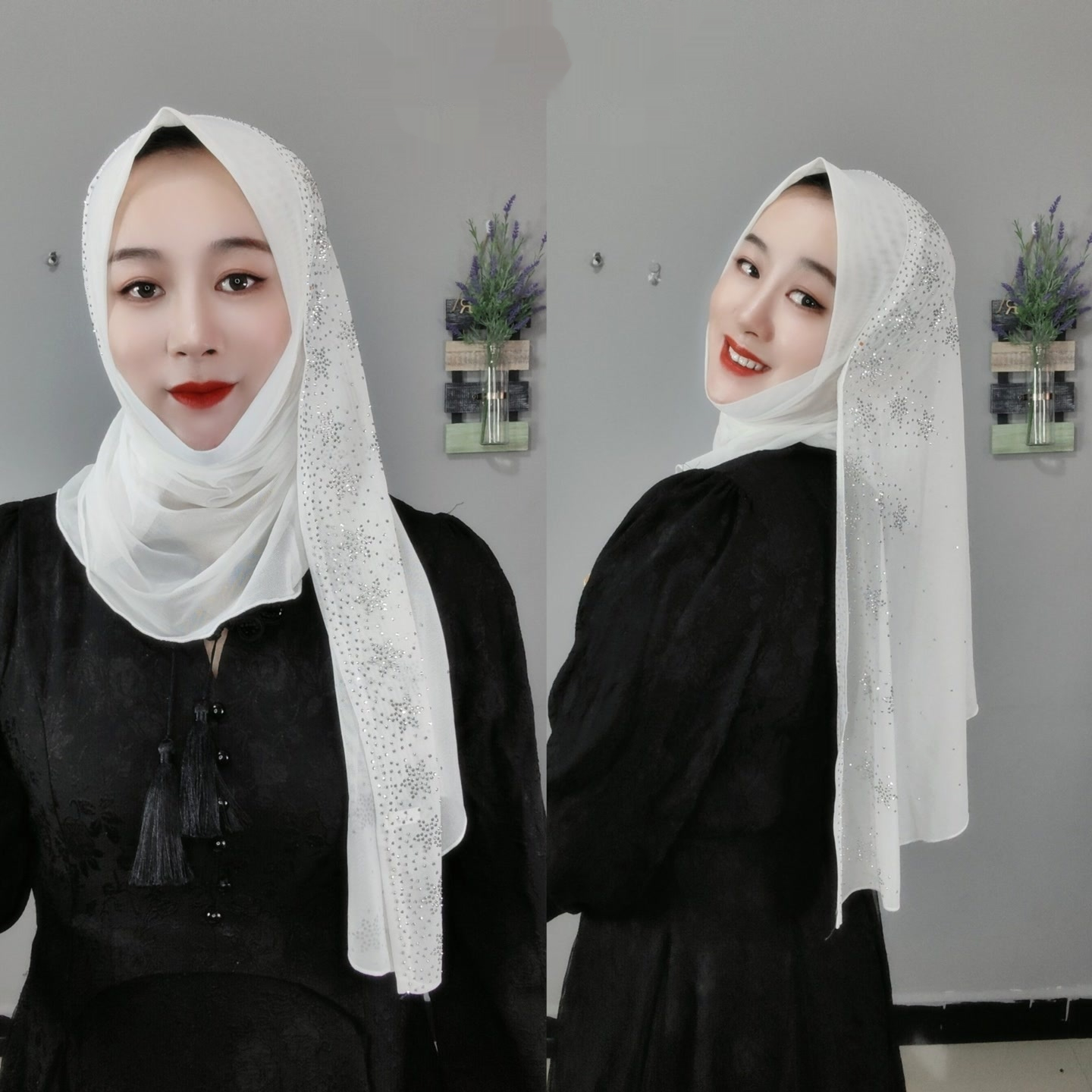 Flower Hot Drilling Voile Turban Winding Towel New Headscarf