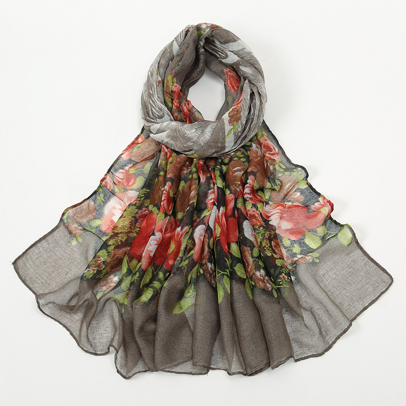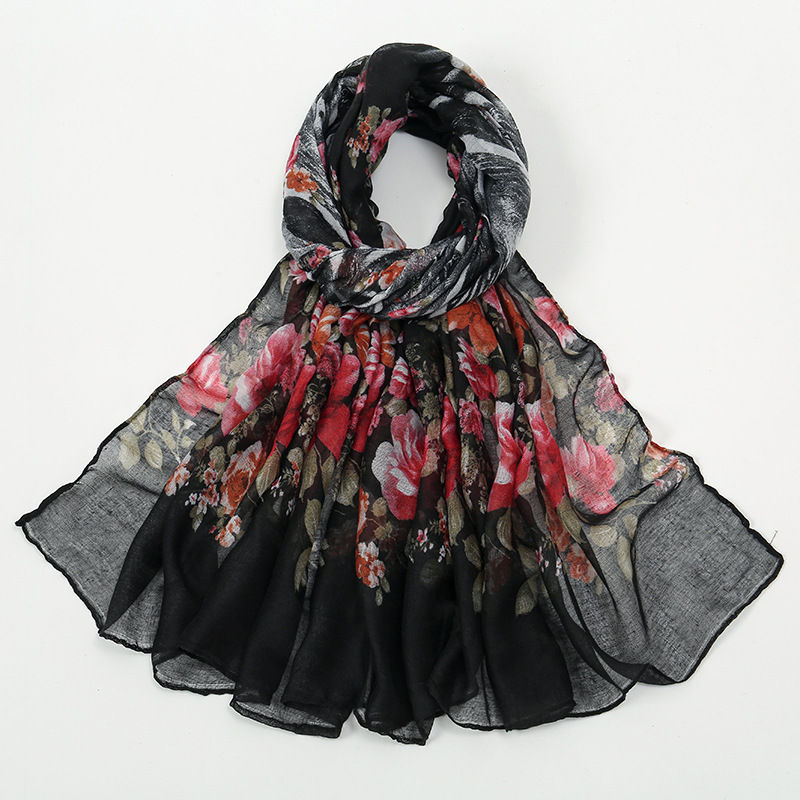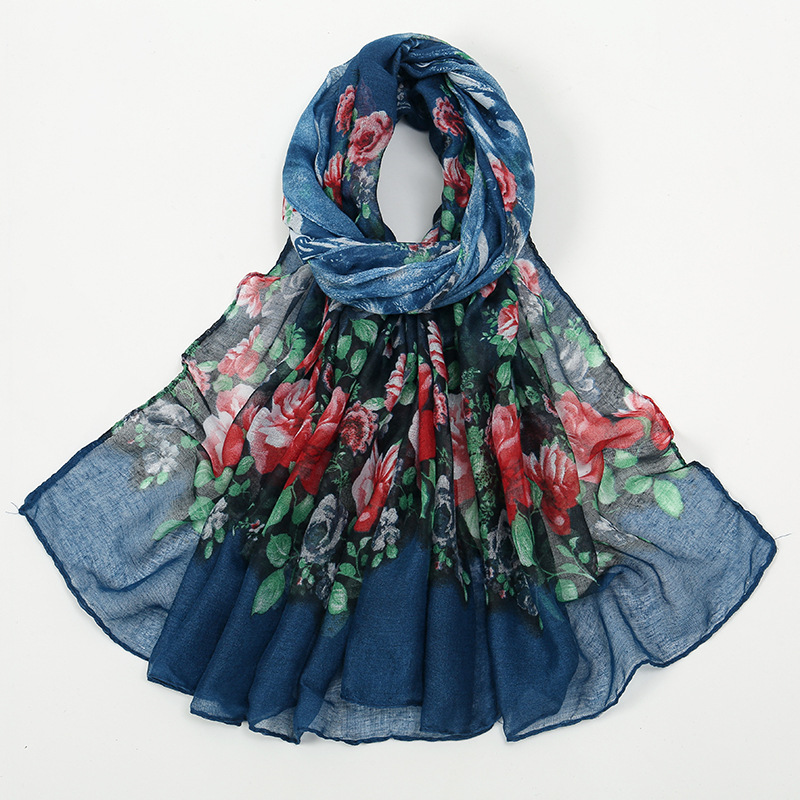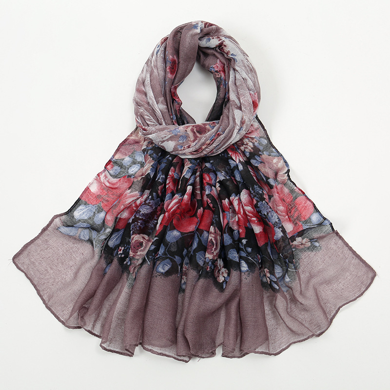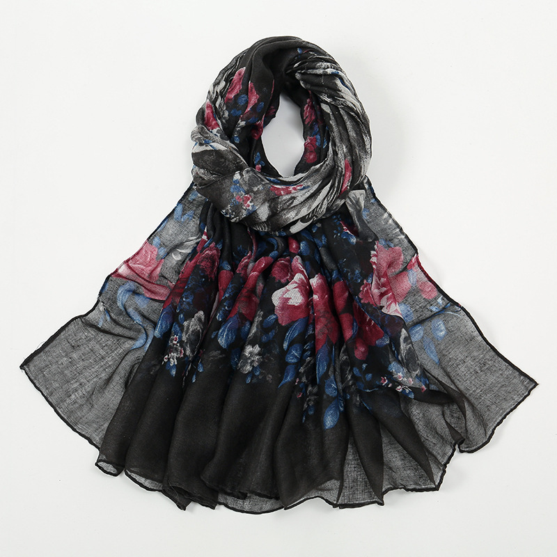 Flower Print Voile Breathable Scarf Women