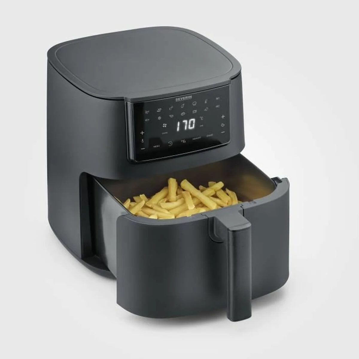 La freidora de aire Severin FR2462 es un electrodoméstico diseñado para facilitar la cocina saludable y versátil en el hogar. Con una capacidad de 7 litros, ofrece un espacio amplio para preparar porciones generosas o platos para varias personas, siendo ideal tanto para comidas diarias como para reuniones pequeñas. Cuenta con 1700W de potencia, lo que garantiza un calentamiento rápido y eficiente, permitiendo cocinar con aire caliente que reduce significativamente la cantidad de aceite necesaria, para así obtener resultados crujientes y sabrosos con menor grasa. Este modelo incorpora 11 programas predefinidos, adaptados a diferentes tipos de alimentos, desde pescados y carnes hasta verduras, facilitando su uso incluso a quienes buscan practicidad sin renunciar a la variedad culinaria. Su funcionamiento con enchufe europeo (EU) asegura compatibilidad directa para su uso en hogares en España y otros países europeos. La tecnología de circulación de aire caliente distribuye el calor de forma homogénea, consiguiendo una cocción uniforme y platos con textura agradable. Además, su diseño suele incluir una cesta antiadherente extraíble que facilita la limpieza posterior. La Severin FR2462 combina potencia y capacidad con múltiples opciones de cocción automatizadas, posicionándose como una opción práctica para quienes buscan una freidora de aire funcional y adecuada para un uso frecuente.