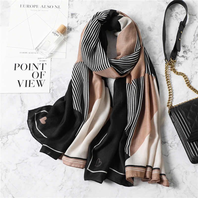 Geometric Pattern Scarf Cotton And Linen Long Large Size -