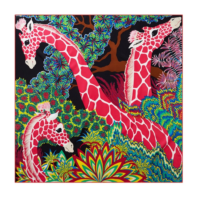 Giraffe 90cm hand-rolled women's twill square scarf