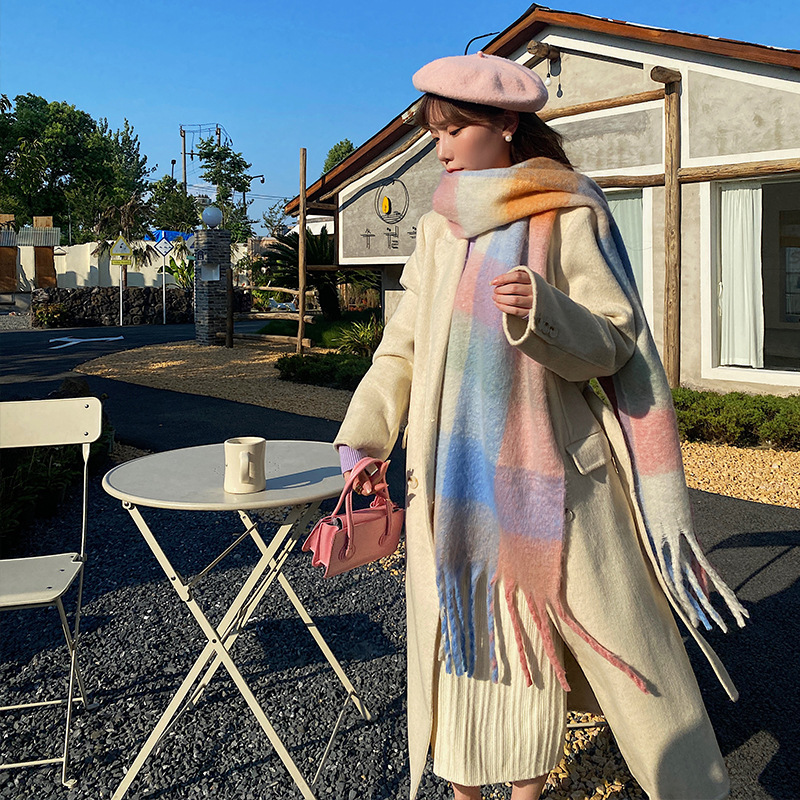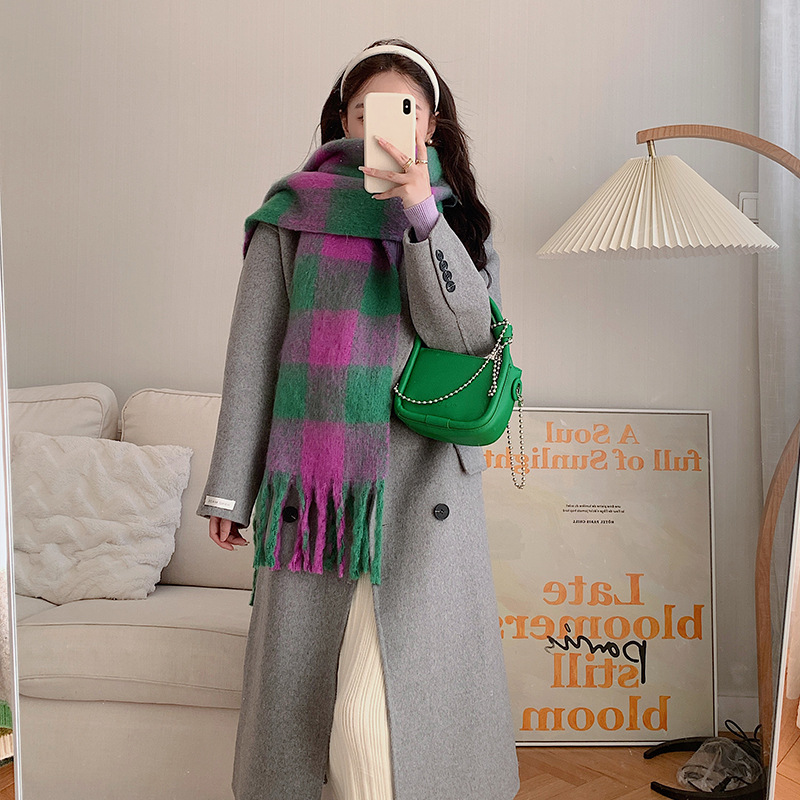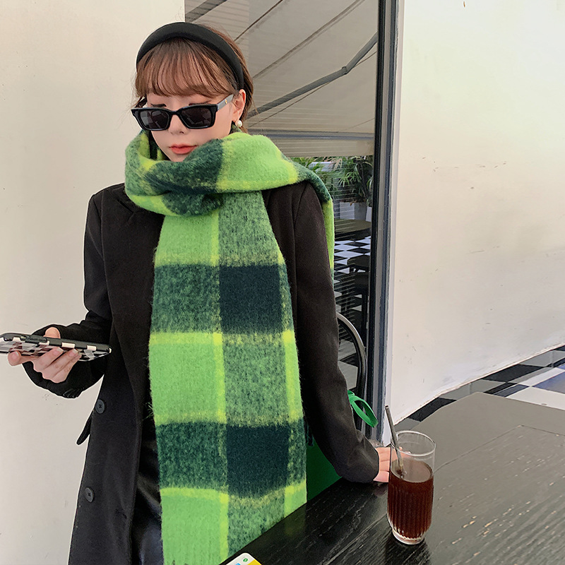 Green Cashmere Like Plaid Soft Waxy Scarf -
