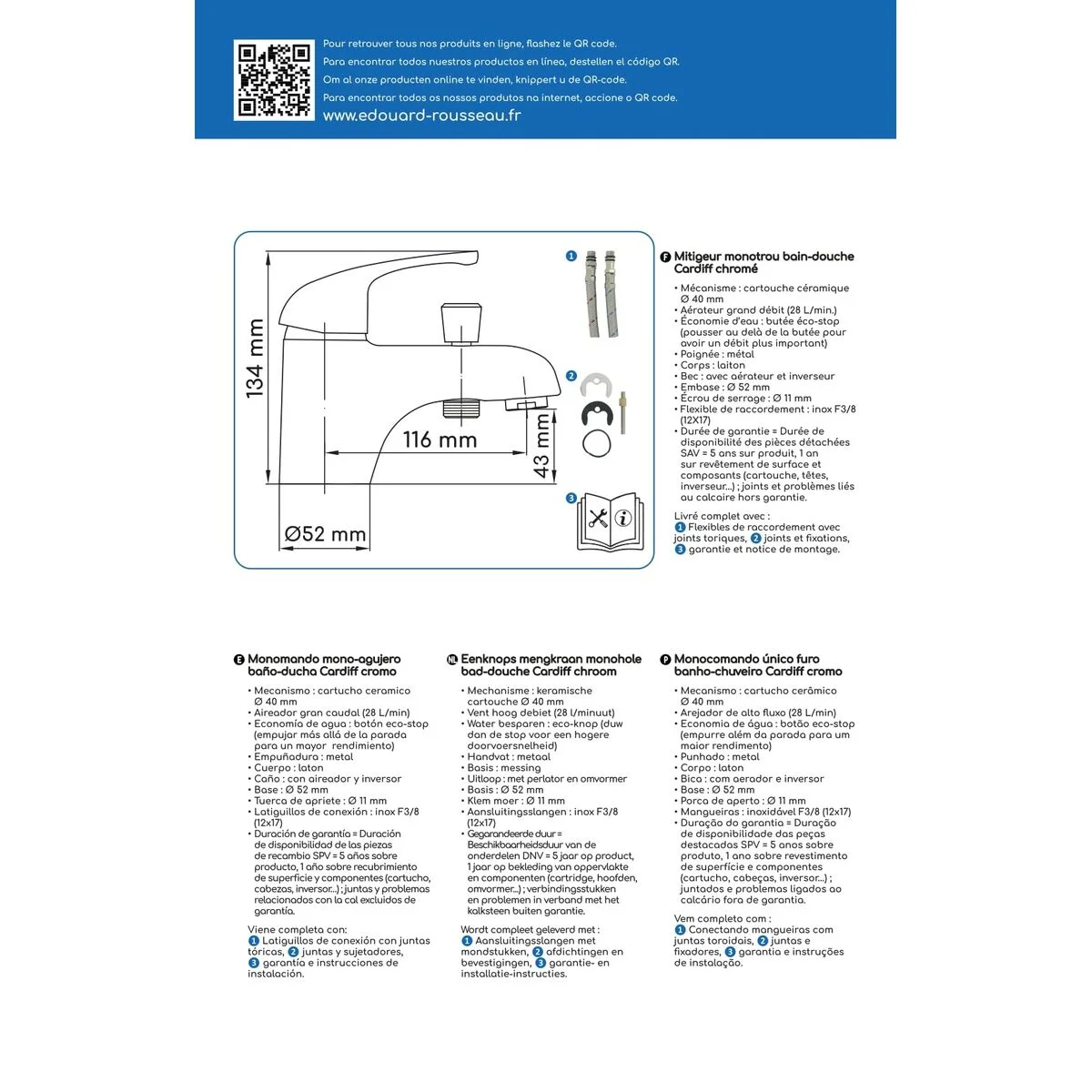 Grifo Monomando para ducha Rousseau Cardiff Chrome