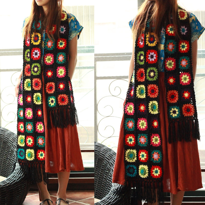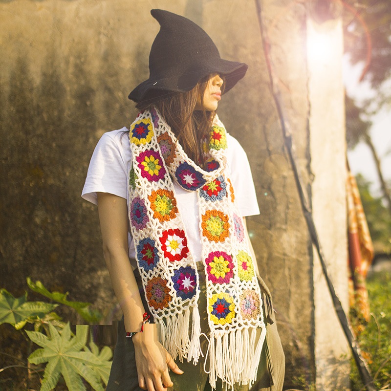 Handmade Vintage Mori Style Japanese Style Wool Flowers Scarf Shawl -