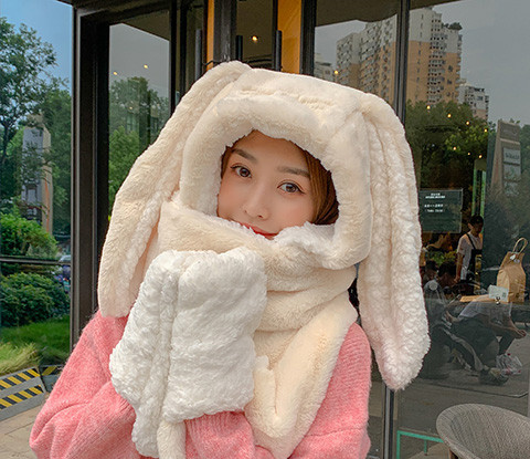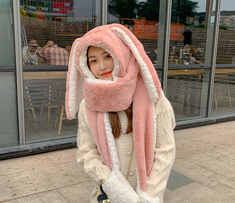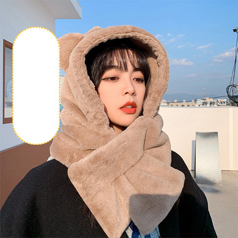 Hat And Scarf All In One Female Warm Plush Ear Protection Hood -